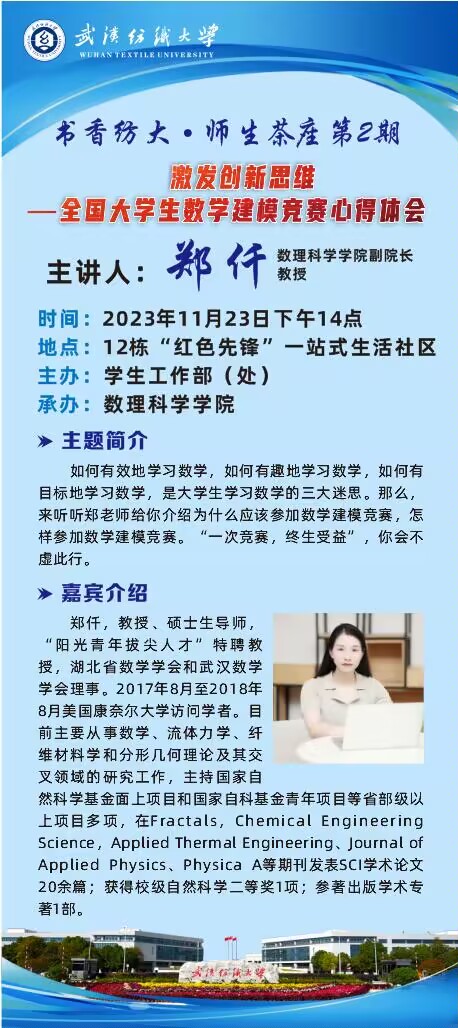 上一条:williamhill英国举办第四期书香纺大师生茶座 下一条:williamhill英国关于2023年研究生攀登奖学金、优秀研究生和优秀研究生干部拟推荐名单公示