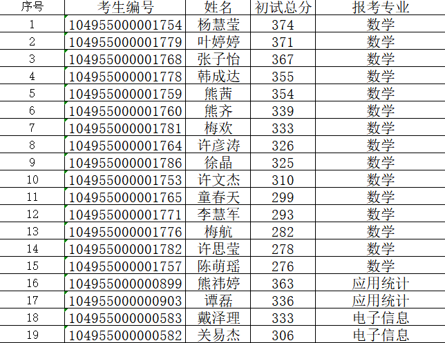 附:第一志愿复试名单
