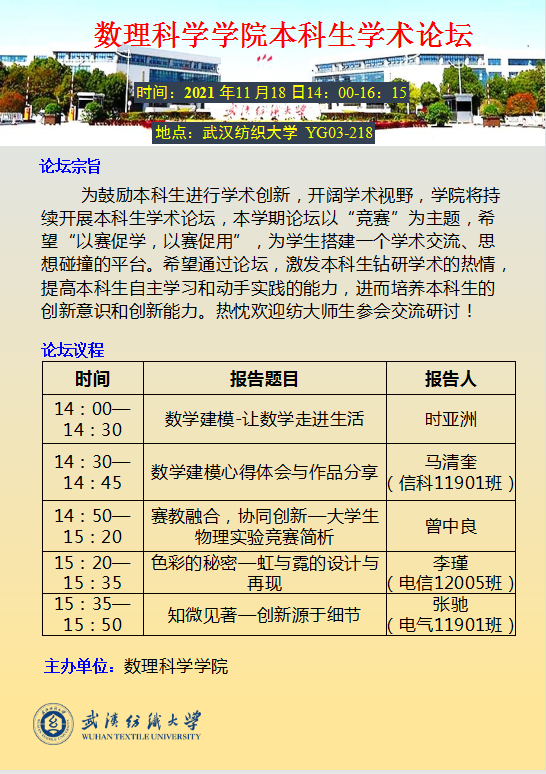 上一条:williamhill英国第十二期研究生论坛将于11月25日举办 下一条:数理学院大数中心第四期教学教研学术沙龙活动