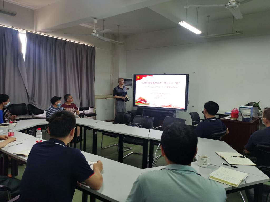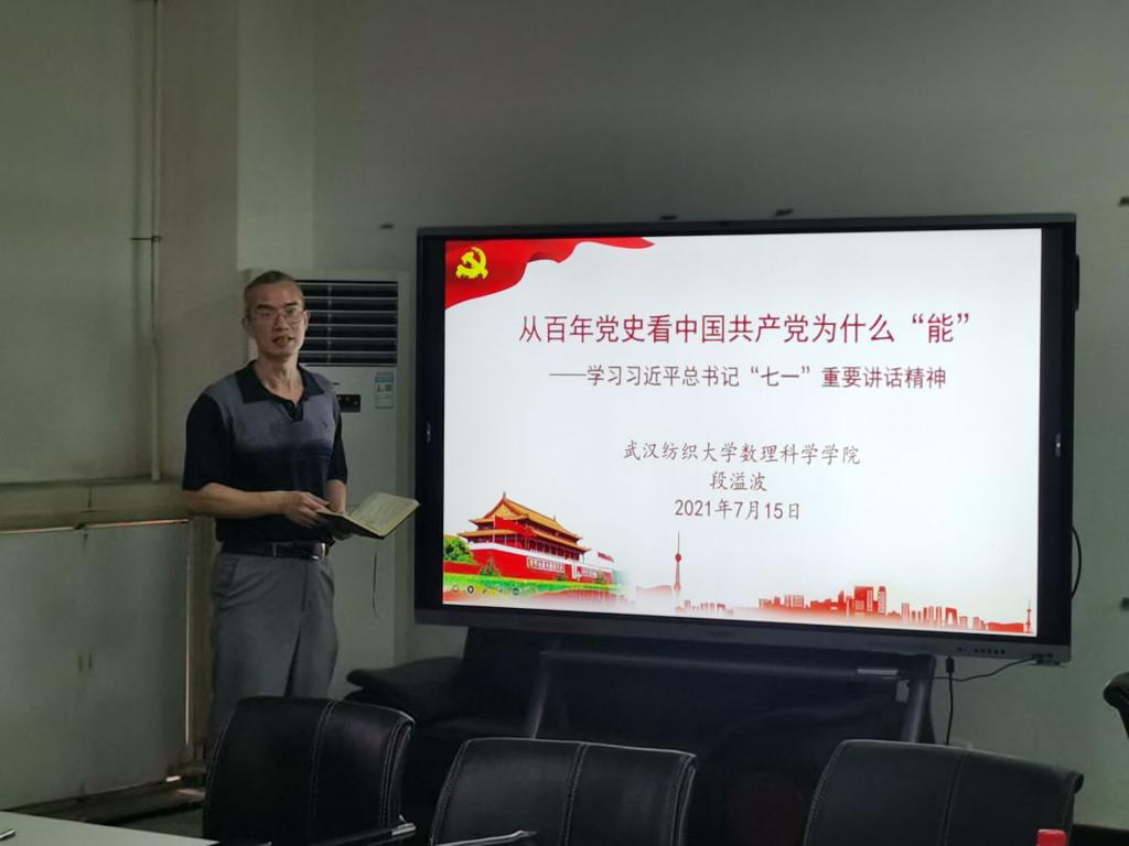 2021年7月15日上午,williamhill英国组织党委中心组开展党史学习教育读书班集中学习活动,学院党委书记段溢波做主题报告。