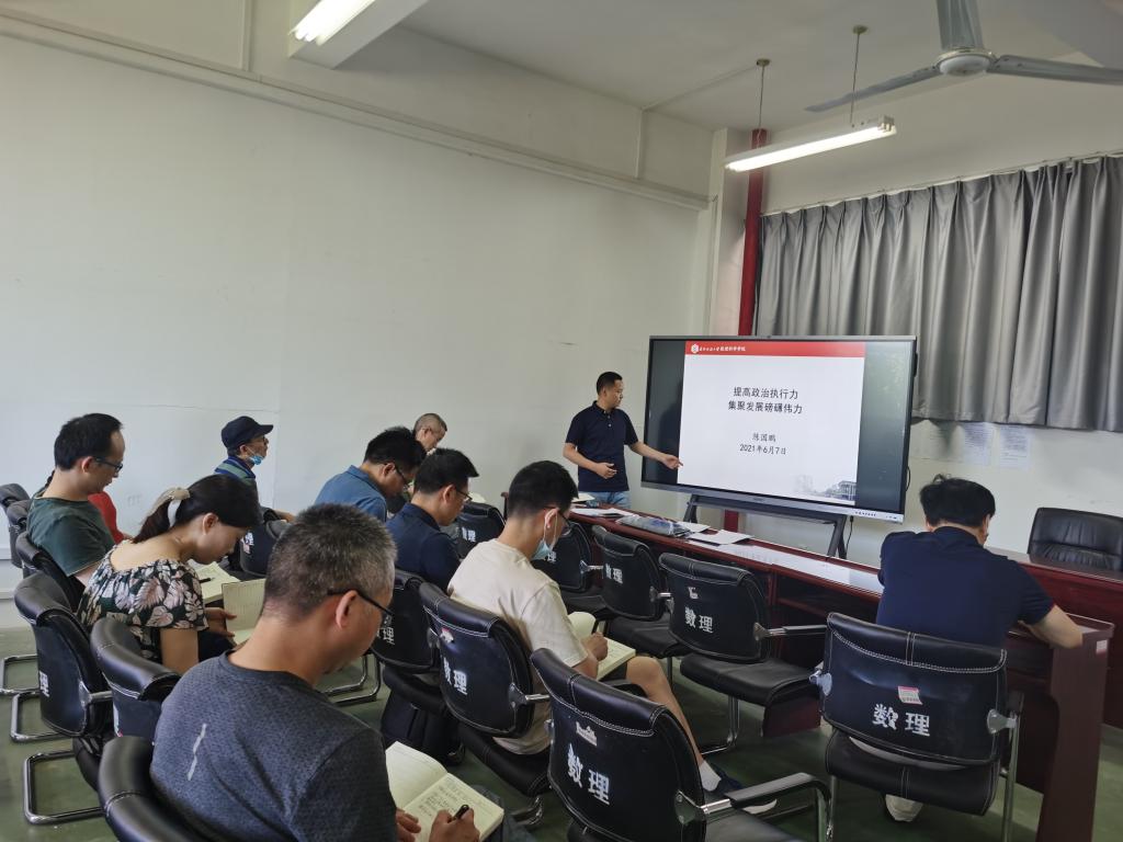6月7日下午,williamhill英国举行“提高政治执行力,集聚发展磅礴伟力”党史学习教育专题党课。学院党委副书记陈国鹏担任主讲,学院党委委员、各系(中心)主任、党支部书记、工会主席、督导组组长参加学习。