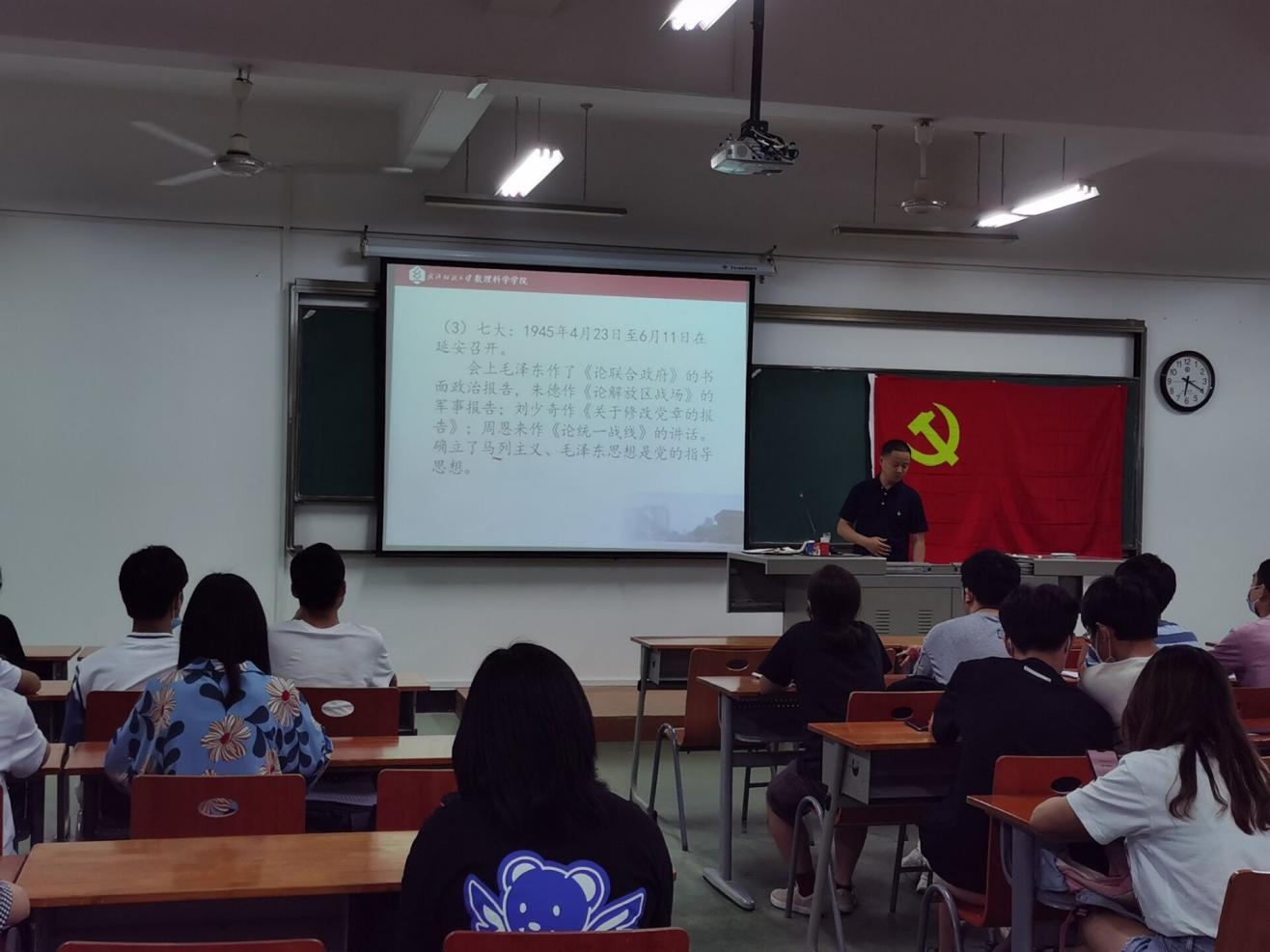 6月3日,williamhill英国党委副书记陈国鹏在崇文楼203教室为2021届毕业生党员讲授党史教育主题党课。学院学生党支部书记方媛,全体毕业生党员参加学习。