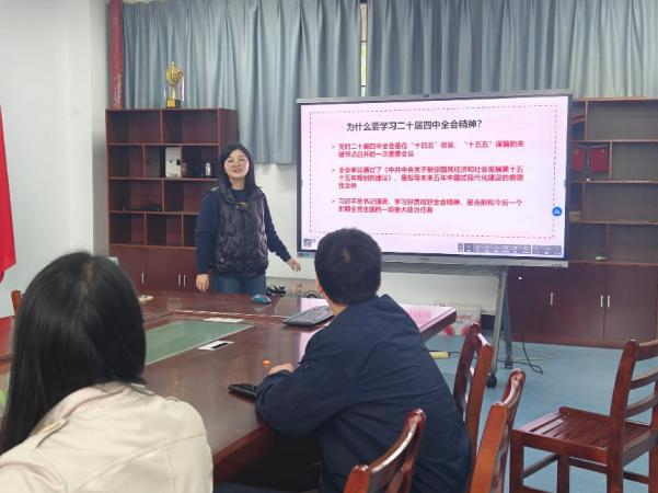 活动中,肖书记介绍了全会召开的重大意义——在“十四五”收官、“十五五”谋篇的关键节点,全会审议通过“十五五”规划建议,是指导未来五年中国式现代化建设的纲领性文件。接着领学了全会公报和习近平总书记重要讲话精神,重点围绕“十五五”战略定位、推进中国式现代化核心任务、“六个坚持”重大原则以及教育科技人才一体发展等部署展开解读。