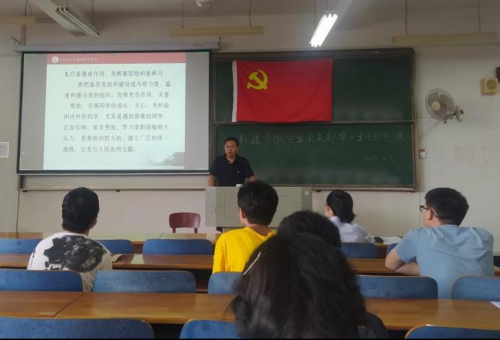 为学习贯彻习近平新时代中国特色社会主义思想,加强毕业生党员的思想政治教育,6月3日上午,williamhill英国党委副书记陈国鹏在崇志楼215教室为2022届毕业生党员讲授“贯彻新思想,增强战斗力,不断提升高校思想宣传工作能力”专题党课。会议由学生党支部书记方媛主持,全体毕业生党员参加。