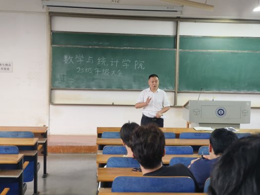9月27日下午,数学与统计学院在崇志楼118教室召开年级大会。会议由学院党委副书记陈国鹏主讲,2023级全体本科生与会。会议主题为国庆假期安全教育暨学业规划动员指导。