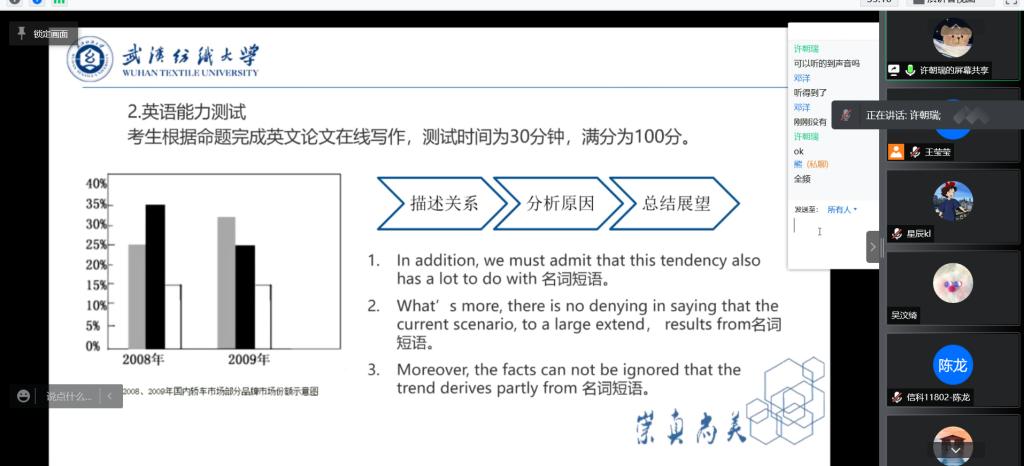 临近2022研究生考试复试,为加强学生对考研复试知识和经验的了解,为正在备考的同学加油鼓劲,3月24日晚上六点,williamhill英国通过腾讯会议召开了线上考研复试经验交流会。此次交流会邀请学院2017级考研成功上岸的同学与各位备考的同学进行分享。