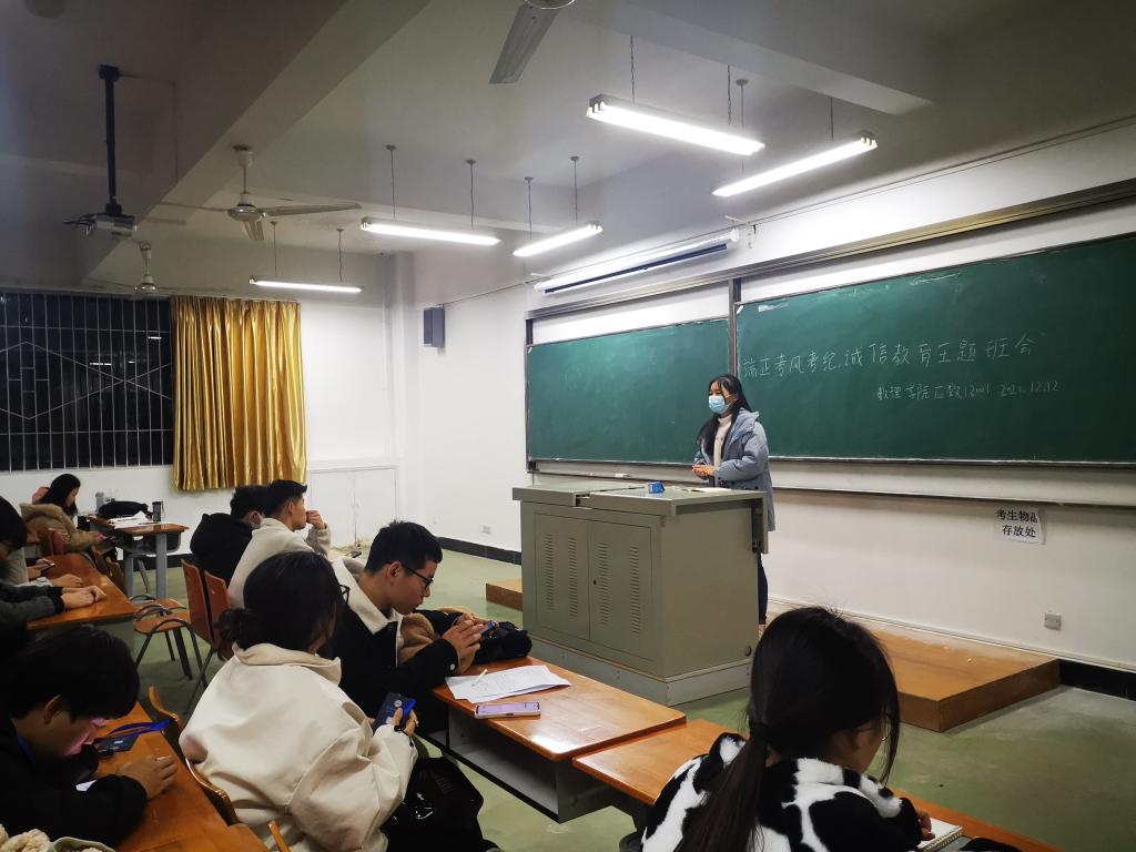 期末将至,为帮助同学们进入复习状态,树立良好的"考风、考纪”,进一步规范学校考试工作。12月12晚,williamhill英国各班于崇志楼、崇文楼组织召开了以“诚信考试"为主题的班会。数理学院同学们积极参与,并为树立良好的考风、考纪提出了宝贵的意见。