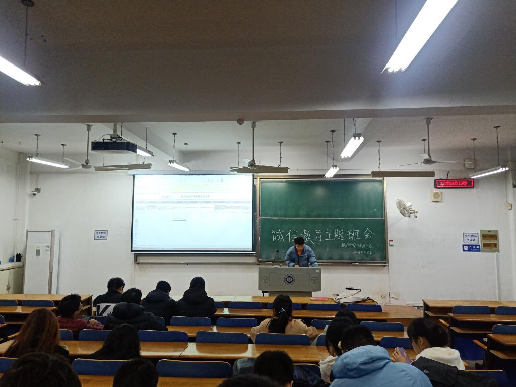 班会伊始,各班班长在会上向同学们详细讲解了关于考试作弊的危害。考试作弊践踏了诚信理念,加剧了信用危机,同时也助长了部分学生不劳而获、投机取巧的心理,作弊风气的形成会引发同学们所厌恶的不正当竞争的产生,会影响同学们学习的积极性,干扰良好学风的形成。对那些积极上进的学生则是一个沉重的打击,严重阻碍着教育的健康发展。在此之后,辅导员方媛讲述了关于诚信考试的内容,同学们都认真听讲,做好记录。辅导员通过讲述真实的例子告诫同学们一定要诚信应考,各种因为考试作弊而被处分的例子,让同学们清楚的认识到了考试作弊的危害。班会最后,辅导员希望期末考将近,同学们都能认真复习,考出理想的成绩。