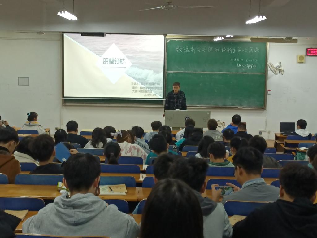 为了加强大学生团员思想政治教育,提升团员的综合素养。11月14日晚,williamhill英国于崇志楼220教室举办“朋辈领航”主题团课教育活动,本次团课由williamhill英国2019级预备党员邱宇航主讲,2021级全体新生悉数参加此次团课活动。