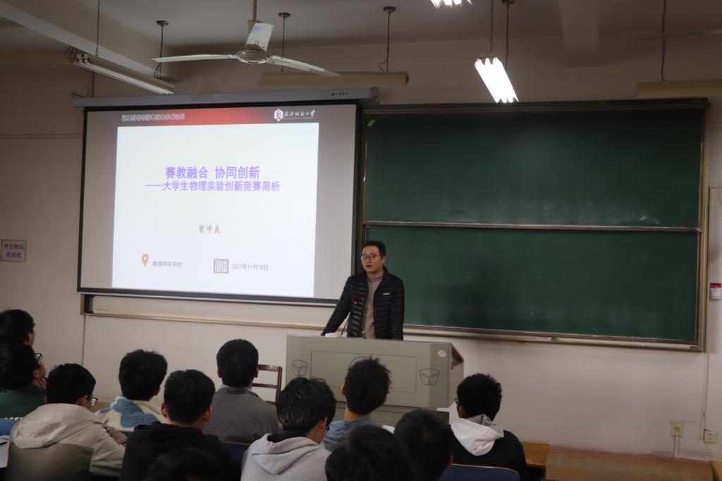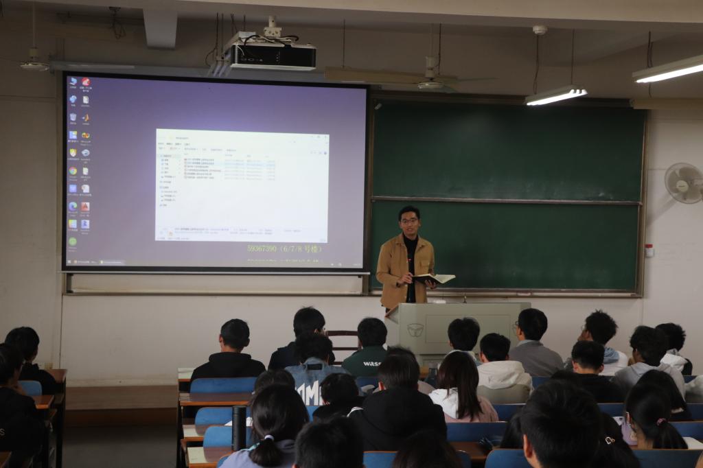 会议伊始,时亚洲老师为在场同学主讲了《数学建模-让数学走近生活》,并鼓励学生积极参加数学建模大赛。他与同学们交流了“为什么学数学”,“数学到底有没有用”,“数学建模给我们带来什么”等问题,他希望同学们能加强自主学习能力,丰富实践知识。随后,曾中良老师向同学们介绍《大学生物理实验竞赛简析》,他以“赛教融合,协同创新”为中心,简要的介绍了大学生物理实验竞赛的办赛背景、办赛目的、组织机构、比赛类别、参赛资格及赛程设置等,并展示部分典型案例。他希望,同学们要有远大的科学理想,正确的世界观、方法论以及团队合作意识,方能成人成才,创新创造。