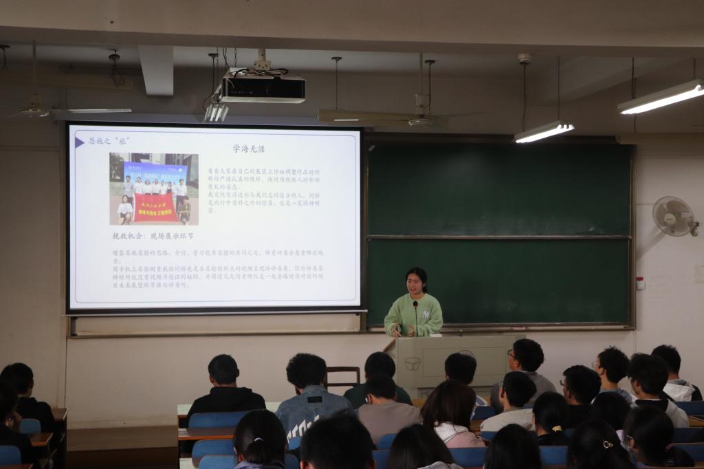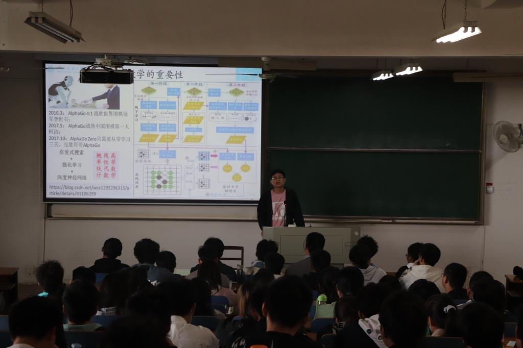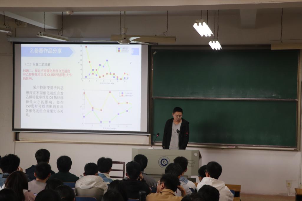 在此之后,学生代表马清奎分享了自己的数学建模心得体会和作品。他向同学们分享宝贵的参赛经验 ,并建议同学们做好基础知识准备,找好队友,及时总结经验。学生代表张驰以分享课题《知微见著——创新源于细节》的方式,介绍了参赛的完整过程。他提出竞赛可以提高表达能力,考验临场反应,锻炼心理素质,提升自我能力,开拓眼界,也会成为考研就业的加分项。学生代表李瑾以幽默的方式给同学们分享课题《色彩的秘密-虹与霓的设计与再现》,她向大家描述了在研究过程中遇到的难题,以及一波三折的参赛经历和丰富的收获。她告诉同学们要同优秀的人前行,从优秀的力量中汲取自己的力量,道阻且长,行且将至。