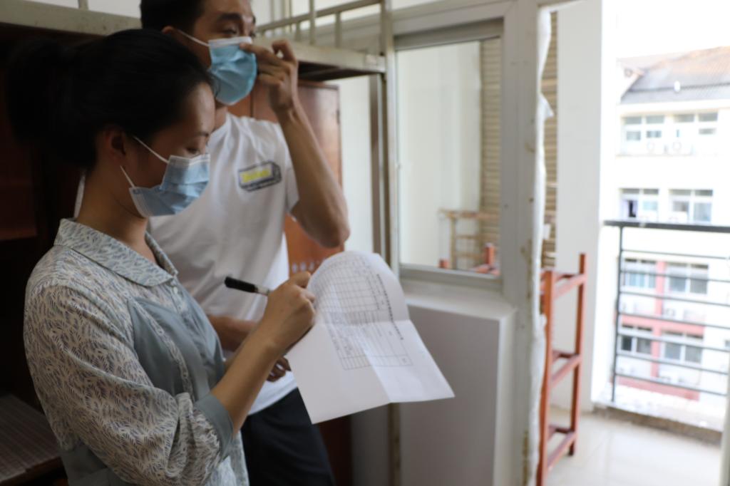 检查过程中,陈书记一丝不苟、不放过任何角落,认真查看检查储物柜、桌子、椅子等物品的配备和使用情况,并到水房、卫生间检查和相关设施情况。对个别宿舍存在的问题,详细统计并填写相关报修表,检查完成后,及时将核查结果报送后勤保障处与学工部,确保每一位新生能够顺利入学,为其提供安心舒适的宿舍环境。