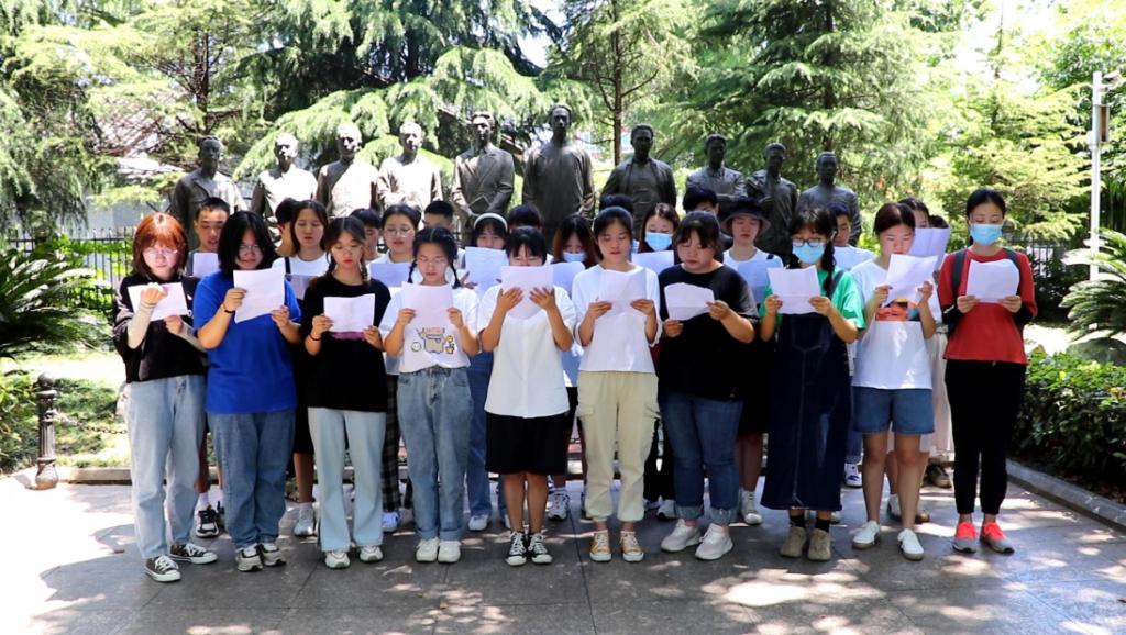 活动最后,党支部同志们在廉政文化公园展开了集体朗诵活动,他们嘹亮的赞歌穿过云霄,穿过历史的沟壑。向先辈学习,传承革命精神,传承民族精神,他们表示今后将继续加强学业学习、增长本领,为社会主义事业贡献自己的青春力量!