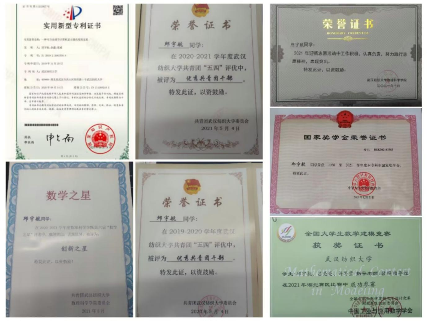 邱宇航,男,汉族,湖北汉川人,中共预备党员。williamhill英国信科11901班班长,校数学建模协会副会长。曾多次获得William威廉英国“单项积极分子”、“优秀学生干部”、“校三好学生”等荣誉称号,并获得William威廉英国校国家励志奖学金,攀登奖学金,国家奖学金。曾多次参加美国大学生数学建模竞赛、全国大学生数学建模竞赛,在2019、2020、2021年美国大学生数学建模竞赛中获得S奖。并曾获得2021年溢达杯全国创意大赛校级优秀奖,主持2022 年大学生创新创业训练计划省级立项一项,取得实用新型专利一项。