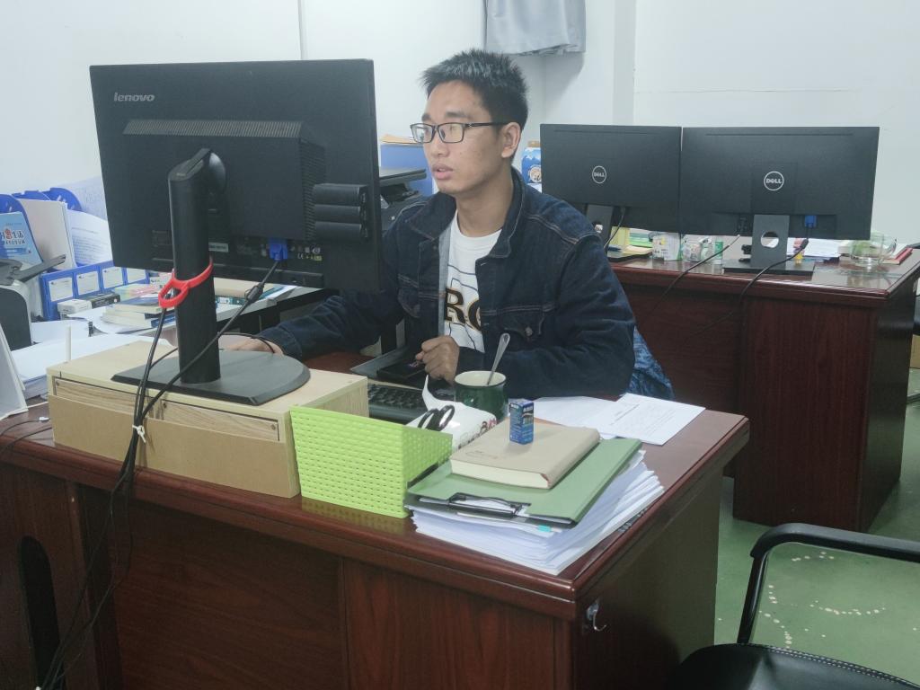 每当踏进四栋二楼的数理学院办公室,总能看见一个黝黑的汉子,或是伏案工作,或是交流谈心。黑色镜框下的眼里仿佛总有光芒在闪烁。班里的学生见到他,总会亲切的喊他一句“熊导”,然后就“匆匆”离开。