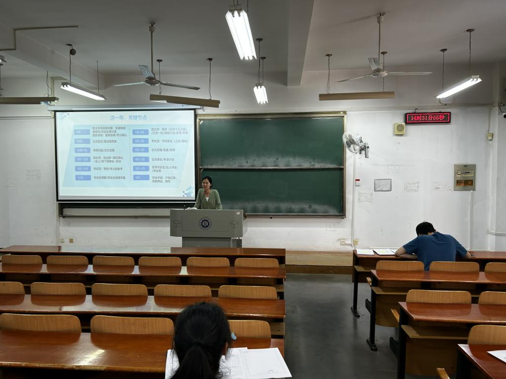 会议伊始,方媛老师对毕业生的就业情况做总结分析,叮嘱同学们充分认识到当前严峻的就业形势,合理衡量自身实力,明确求职目标和职业发展方向,积极参与宣讲会和招聘会,抓住春招最后的就业机会。而后,方媛老师为同学们提供了选调生、三支一扶、西部计划以及应征入伍等多个就业思路,并向大家详细讲解了报名程序、条件以及相关补贴政策,鼓励大家找准定位、做好功课。并对毕业生的考研情况做总结分析,对考研已上岸同学表示祝贺,鼓励想要二战的同学们正确评估自实际情况,尽早做出合理的学习规划。