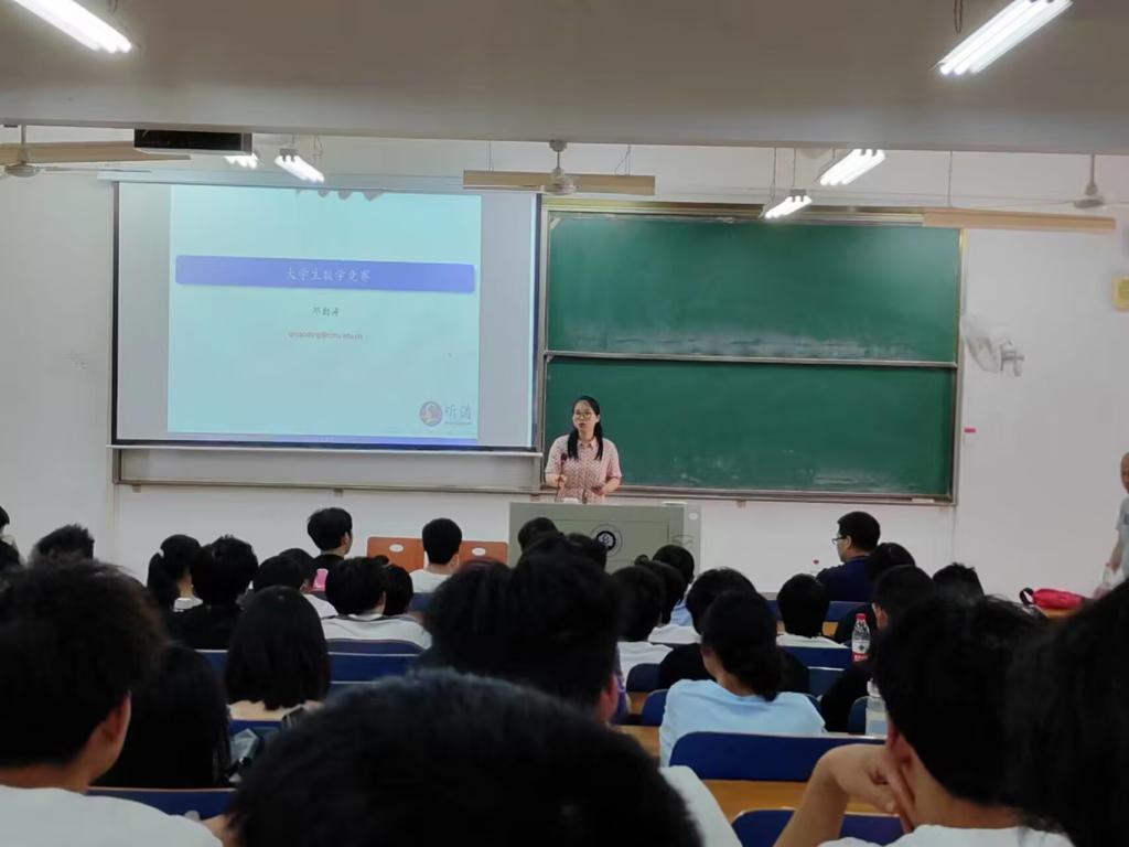邓勤涛教授是华中师范大学数学竞赛的指导老师,在数学竞赛方面有着丰富的经验。在宣讲会上,邓教授从正确认识天赋、比赛介绍、赛题选择三个板块向同学们引入了对全国大学生数学竞赛的介绍,并从竞赛考点、复赛资格获取、如何准备等多个方面详细讲解竞赛流程,帮助我院学生更好地了解数学竞赛。在对于“天赋”的理解中,邓教授强调“少慢精深”的学习方法,并强调同学们对于数学竞赛的学习不能急功近利,而需要日复一日的坚持付出。
