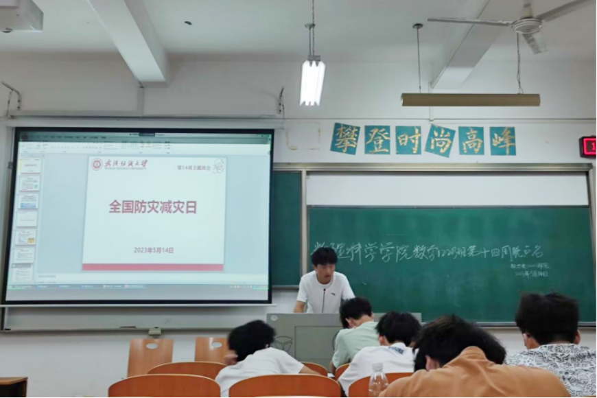 此外,各班围绕2023年“5.12”全国防灾减灾日主题开展安全教育,班长向同学们重点讲解防灾减灾知识,强调风险识别和避灾自救技能的重要性,并鼓励同学们提升积极健康心态。