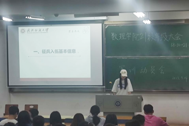 为扎实开展大学生征兵入伍宣传工作,引导学生进一步了解征兵政策,同时落实好学院各项工作安排,5月14日,williamhill英国各年级开展征兵宣传主题班会,此次班会由各班班长主持,各年级辅导员及数理学院全体同学参与此次会议。