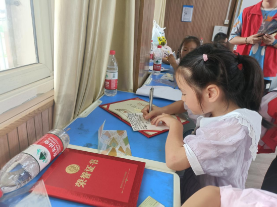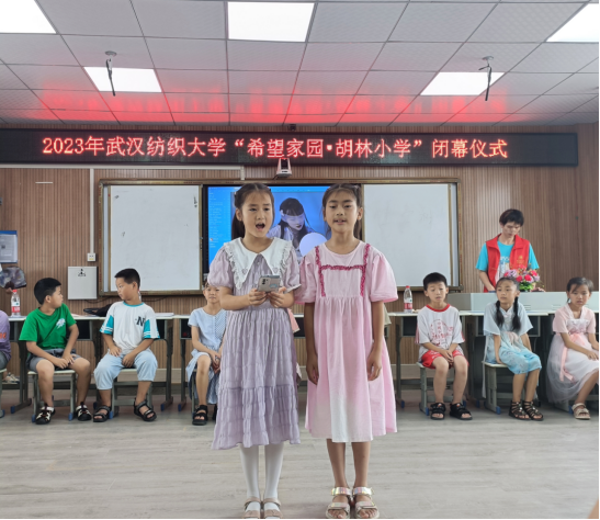 在胡林小学“希望家园”暑期支教闭幕仪式上,实践团成员首先向此次支教活动中区领导以及学校的大力支持表示衷心的感谢,并对此次支教活动进行了工作总结和感悟分享,同时向积极参与支教课堂的小朋友们给予感谢和祝福。随后,为使孩子们在轻松愉悦的氛围中欢度此次闭幕仪式,收获进一步的成长和感悟,实践团成员组织小朋友们开展朗诵比赛和才艺展示,孩子们热情高涨,积极上台展现自我。他们身上散发出来的自信和光芒,是志愿者们收获到最宝贵的回报和财富。临近仪式末尾,孩子们纷纷透露出不舍,在志愿者的组织下,孩子们在贺卡上书写下对志愿者老师们的真情寄语。贺卡朗诵环节,孩子们的细腻情感在一字一句中抒发,时而欢笑,时而哽咽,孩子们与志愿者已建立起深厚的情谊。交换贺卡之后,此次闭幕仪式进行到了最后一项,各小组结算积分并颁发奖品。孩子们在此次支教活动中收获到的不仅是奖品和积分,更多的是视野的开拓和内心的成长。伴随着不舍和留恋,此次闭幕仪式圆满结束。