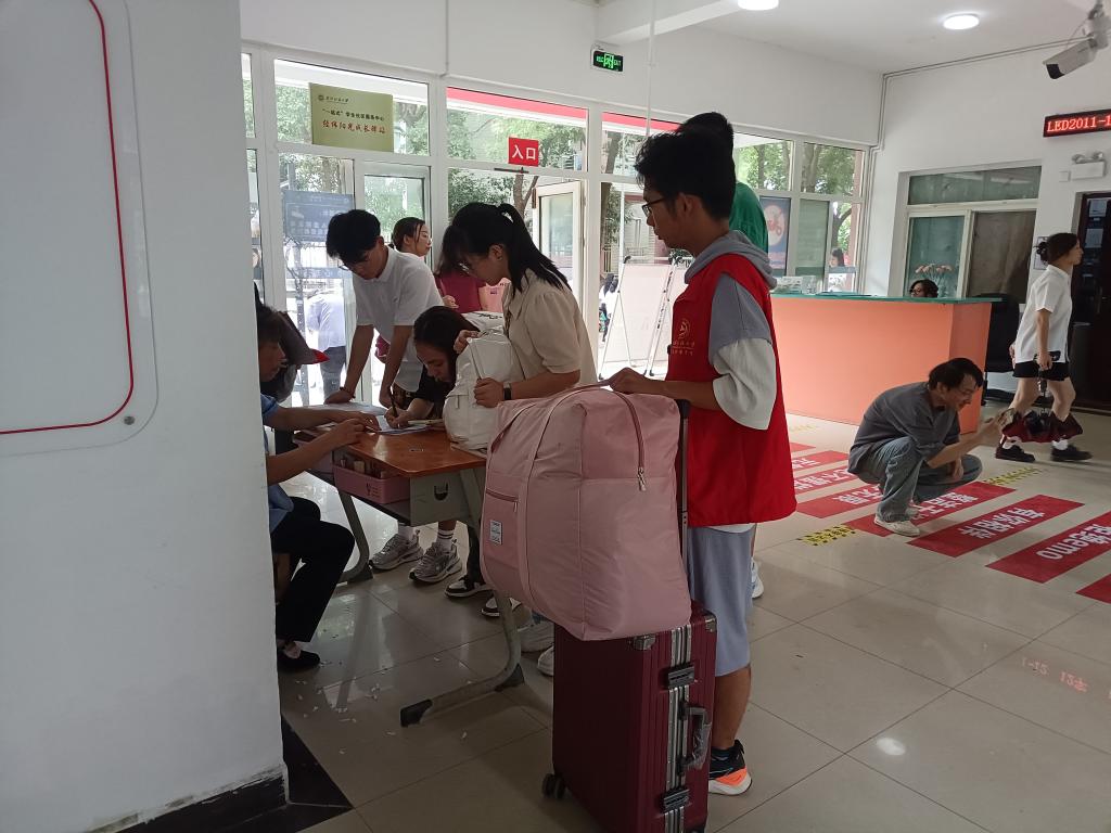 帮助有需要的同学,陪同她们办理生活用品以及帮助同学将行李送上楼。