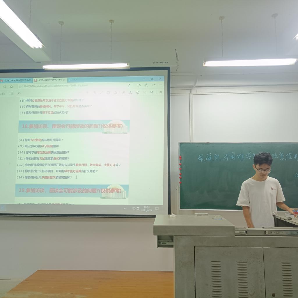 最后,班长宣读了认定对象及标准,阐述各项细则,强调需要准备的各种证件及材料证明,呼吁大家积极认真配合学院的各项工作,学院也将严格要求各个环节的严谨性,切实保障同学们的利益。