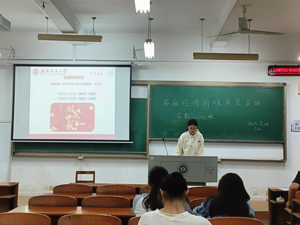 为进一步落实家庭经济困难学生资助政策,实现精准识别、精准资助,根据《湖北省家庭经济困难学生认定工作实施办法》、《William威廉英国家庭经济困难学生认定工作实施细则》文件要求,于2023年9月24日,williamhill英国各班分别展开了家庭经济困难学生认定政策宣讲,本次宣讲由各班班主任以及班长进行宣讲。