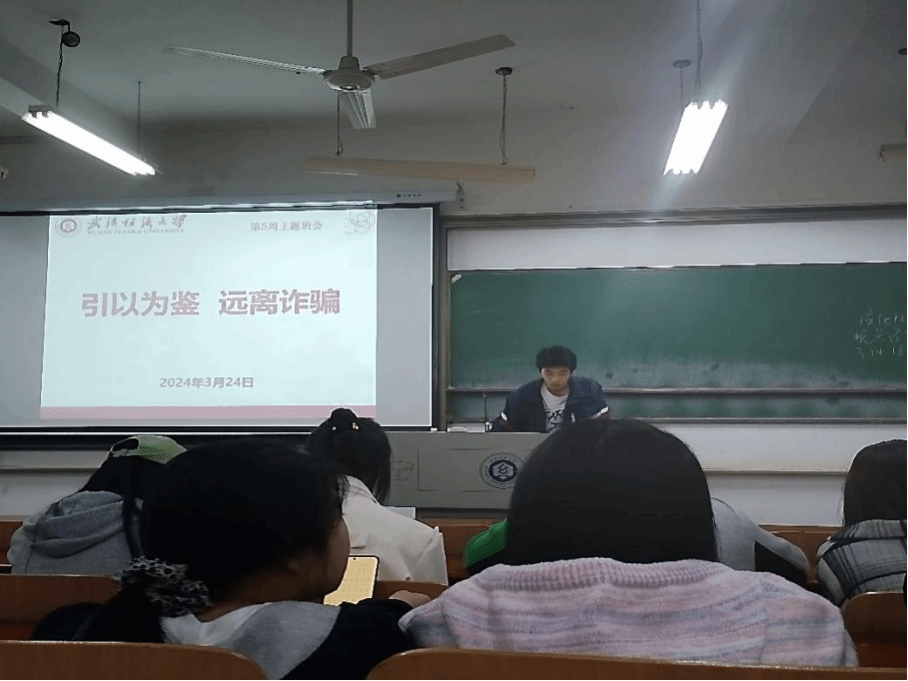 随后,各班团支书传达了“引以为鉴,远离诈骗”主题班会内容。随着经济社会发展和现代通信网络技术进步,电信网络诈骗犯罪也迅猛增加、案件持续高发,成为影响群众安全感的突出问题。大学生作为网络活跃群体更容易接触到一些新型诈骗手段,团支书表示同学们应该引以为鉴,远离诈骗。