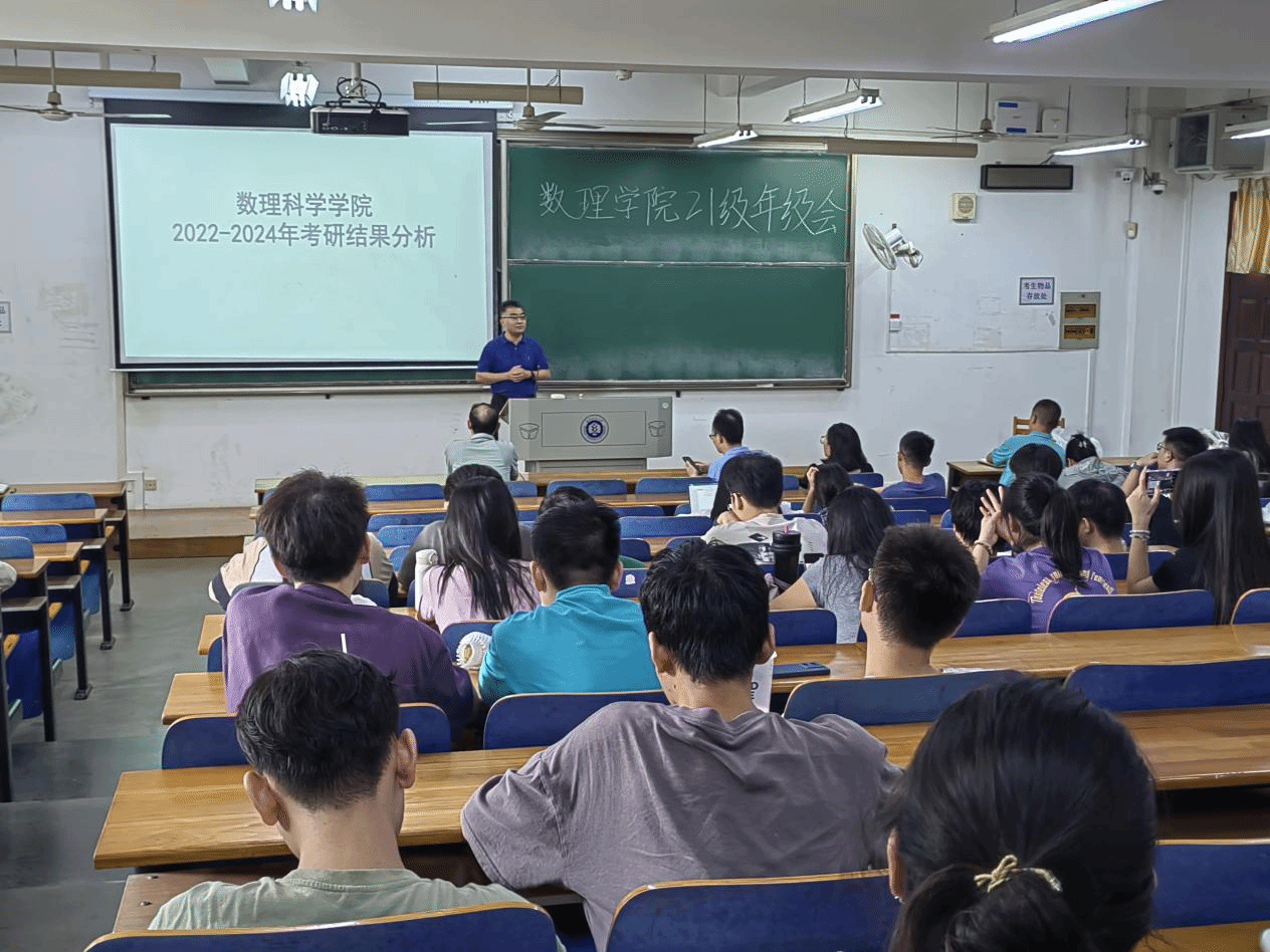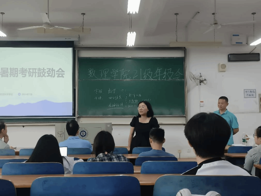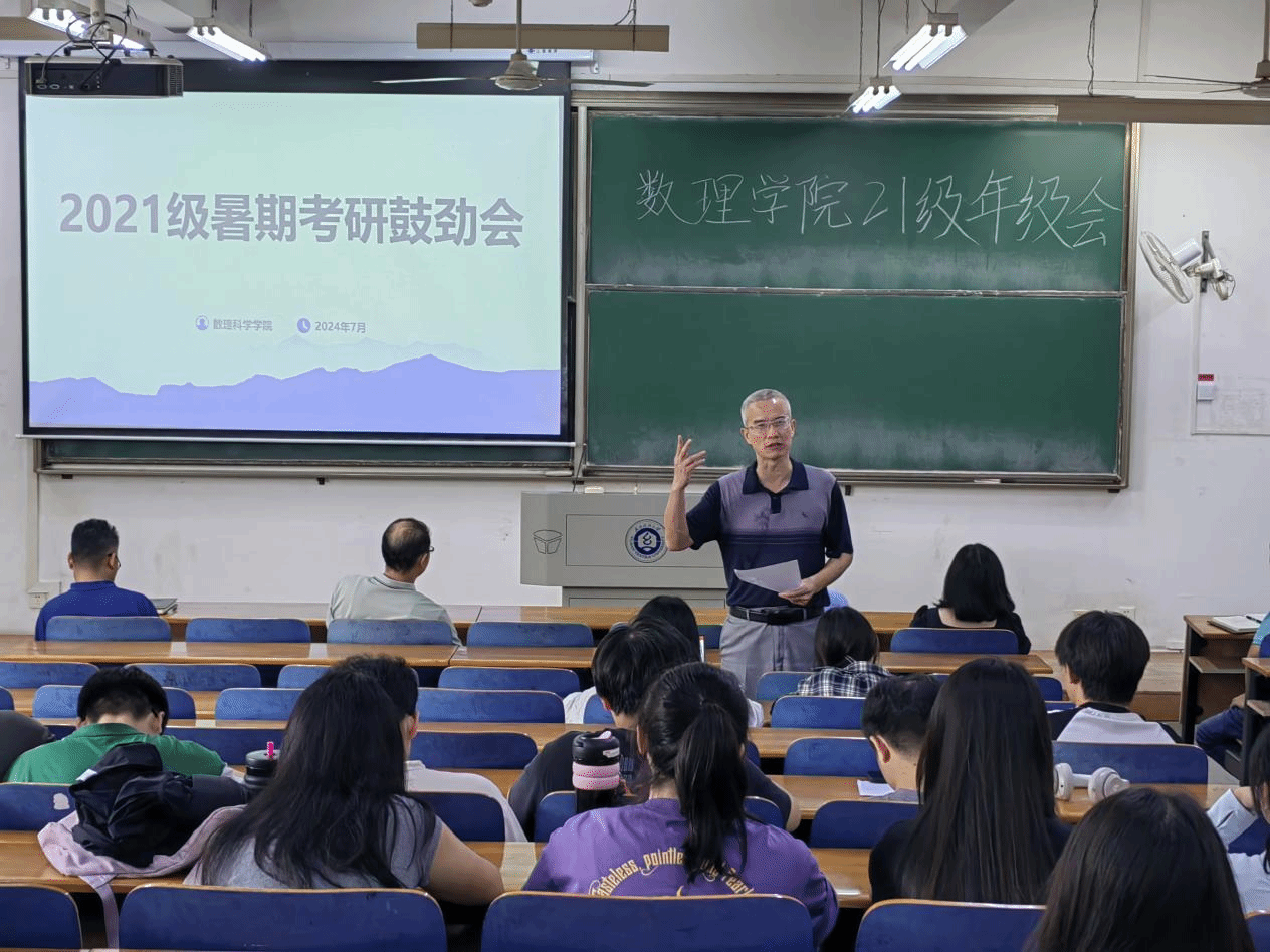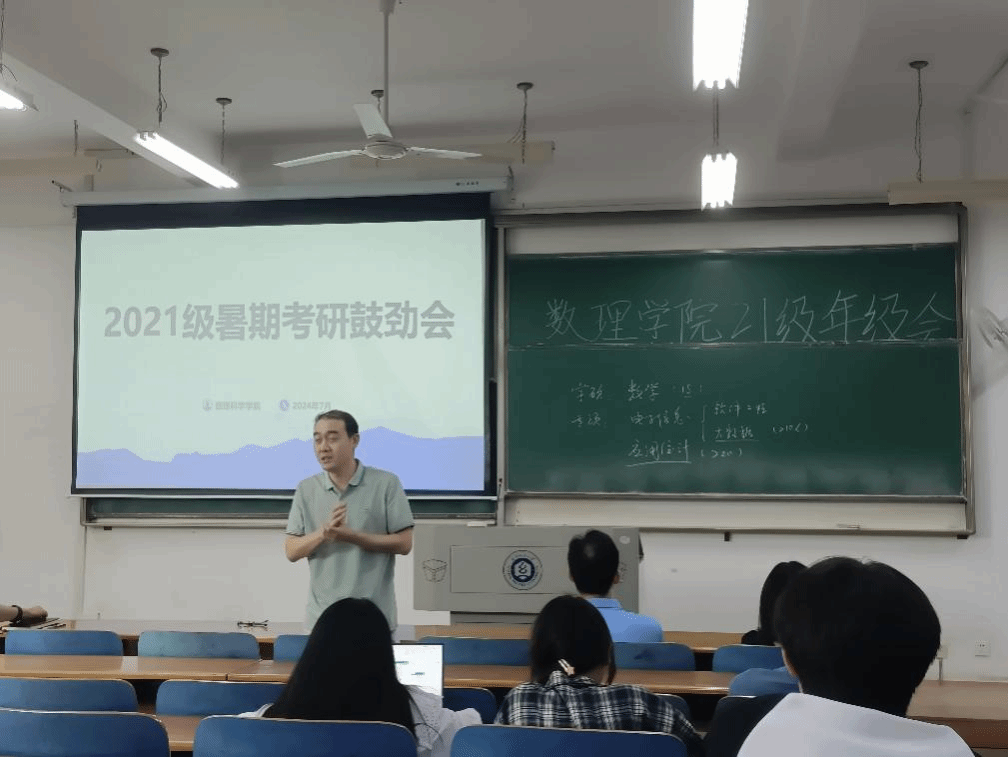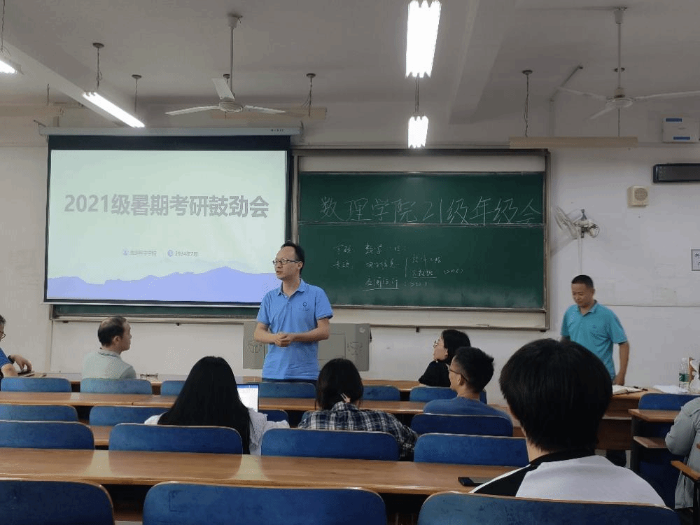 伴随着暑期的到来,数理学子全力备考,学院多措并举保障考研学子需求,7月12日下午,williamhill英国于崇志楼117教室开展考研鼓劲会,williamhill英国院长汪胜祥、院长党委书记段溢波、副院长郑仟、党委副书记陈国鹏亲临教室为大家鼓劲打气、专业教师及班主任王彦波老师、付红波老师、黄熙老师、钟毓老师,为同学们分享考研经验、答疑解惑。本次会议由陈国鹏书记主持,21级辅导员方媛及全体考研的同学参与本次会议。