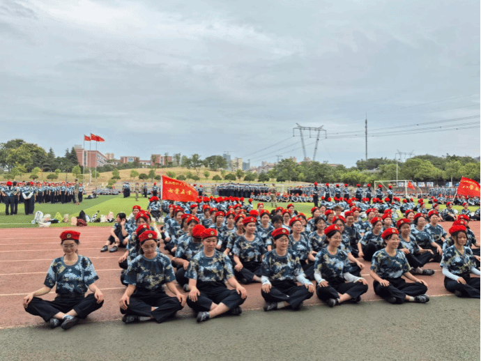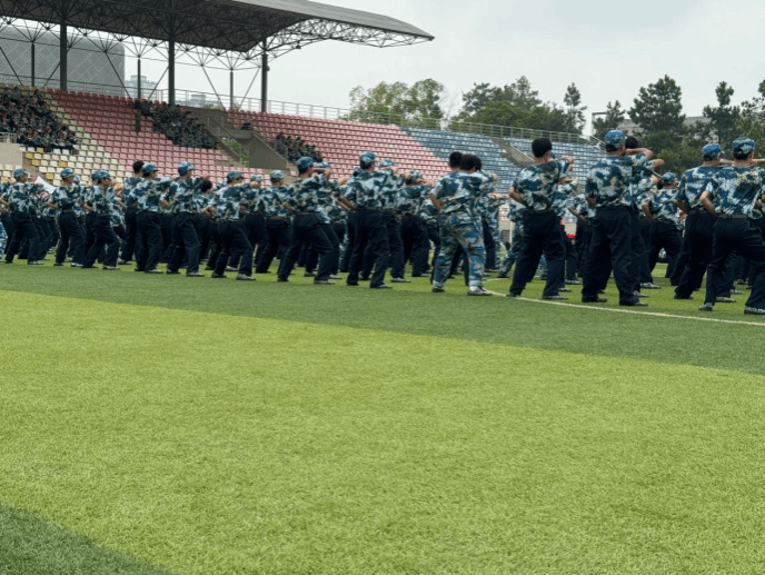 随着音乐的响起,操场上瞬间化身为一片热血沸腾的海洋。各连队方阵依次登场,学员们身着统一的迷彩服,精神抖擞,仿佛一支支即将出征的部队。他们动作整齐划一,从“抱拳礼”的庄重开始,到“直拳冲击”、“勾摆连击”的迅猛有力,每一个动作都精准到位,每一声呐喊都响彻云霄。特别是当全体学员齐声高呼“杀!杀!杀!”时,那气势仿佛能穿透云霄,震撼人心,完美诠释了军体拳的威武与力量。
