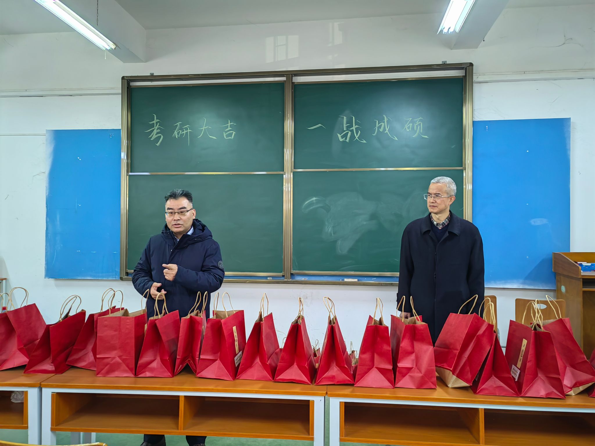 汪院长以自己学生时代的考研经历举例,让大家保持轻松心态,他表示:“学院一直以来都非常重视考研工作,我们希望通过这样的慰问活动,让同学们感受到学院的关心和支持。同时,也希望同学们能够将这份温暖转化为学习的动力,在考研路上不断前进。”
