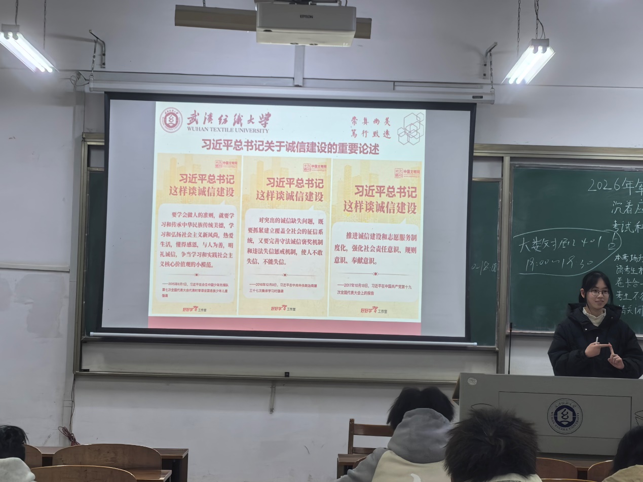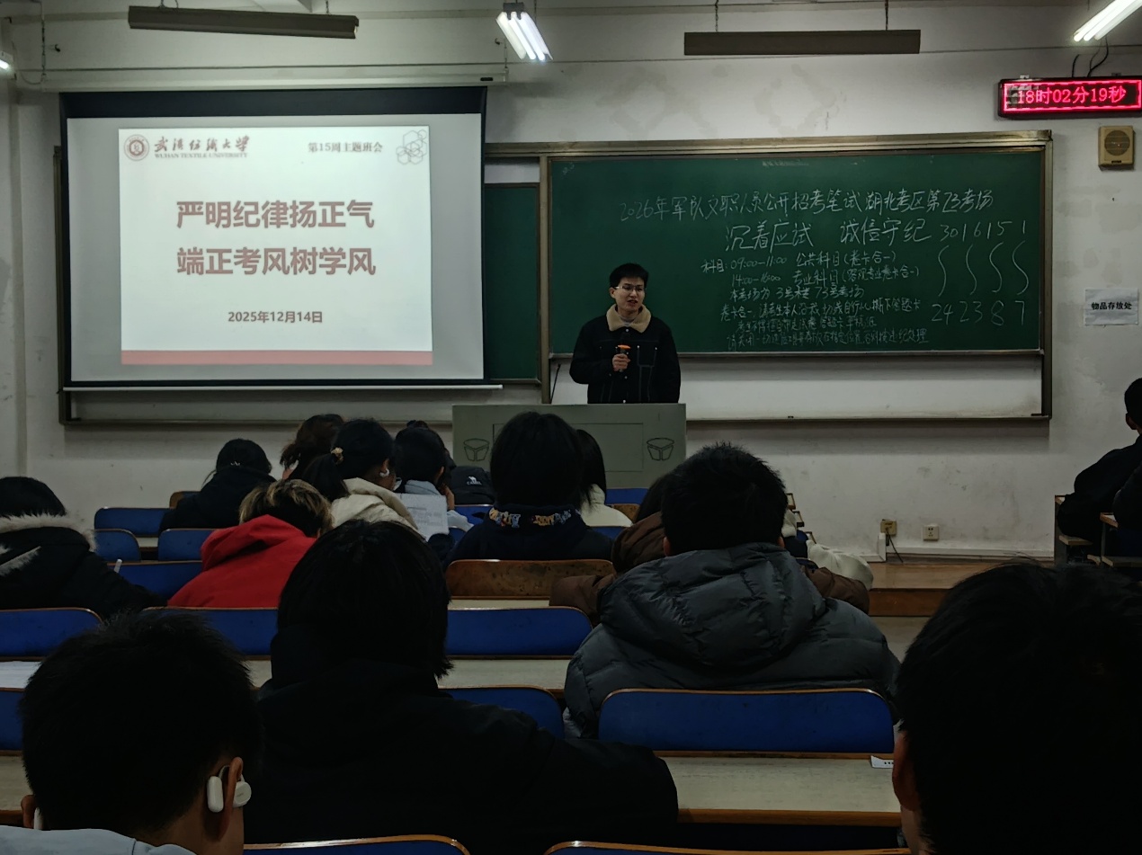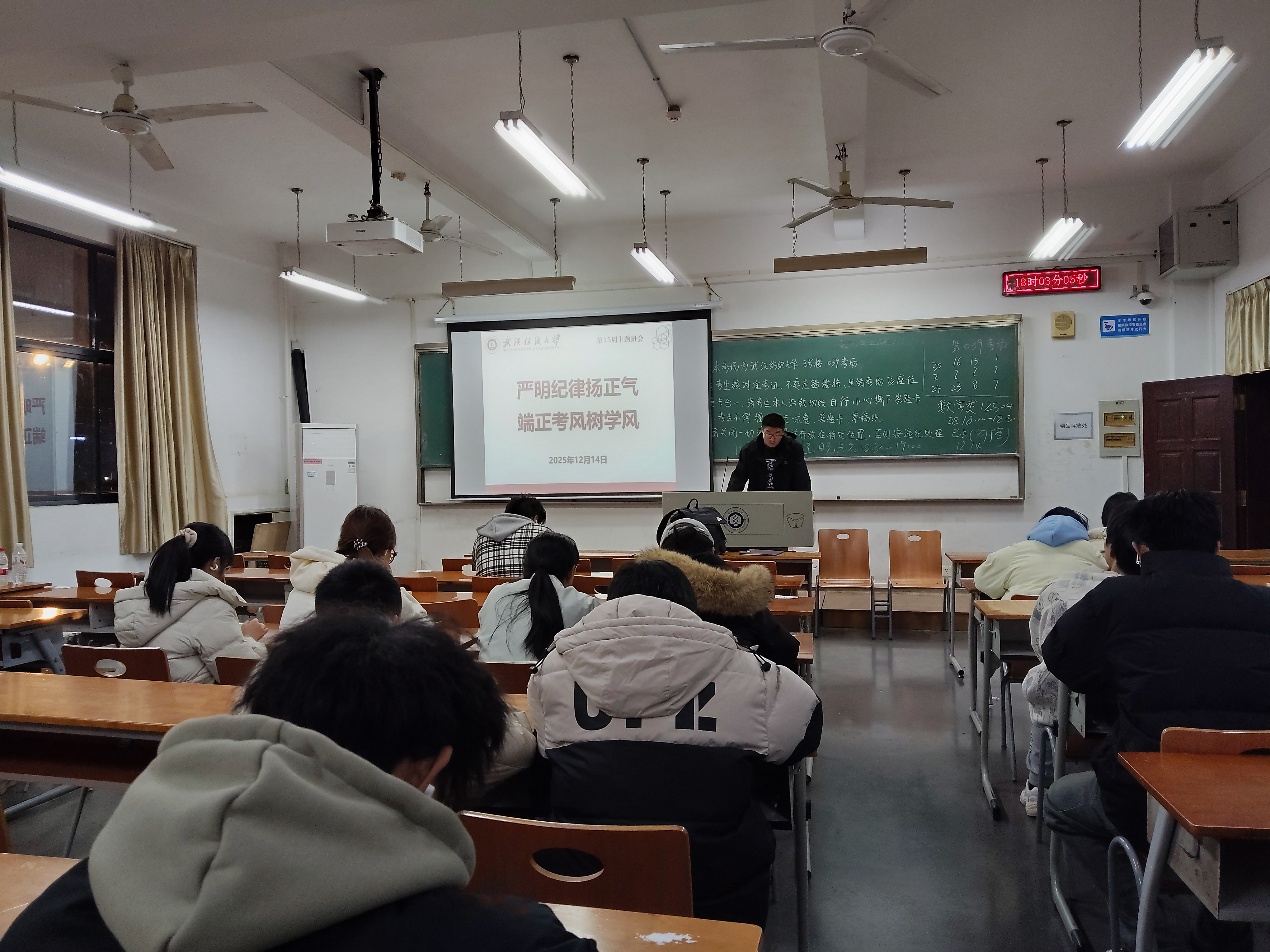 为强化学生诚信应考意识,筑牢学风建设根基,12月14日,数学与统计学院组织各班级开展第十五周“诺守诚信考风 践行守信之德”主题班会,为即将到来的期末考试保驾护航。数学与统计学院全体同学参加,班会由各班班长主持。