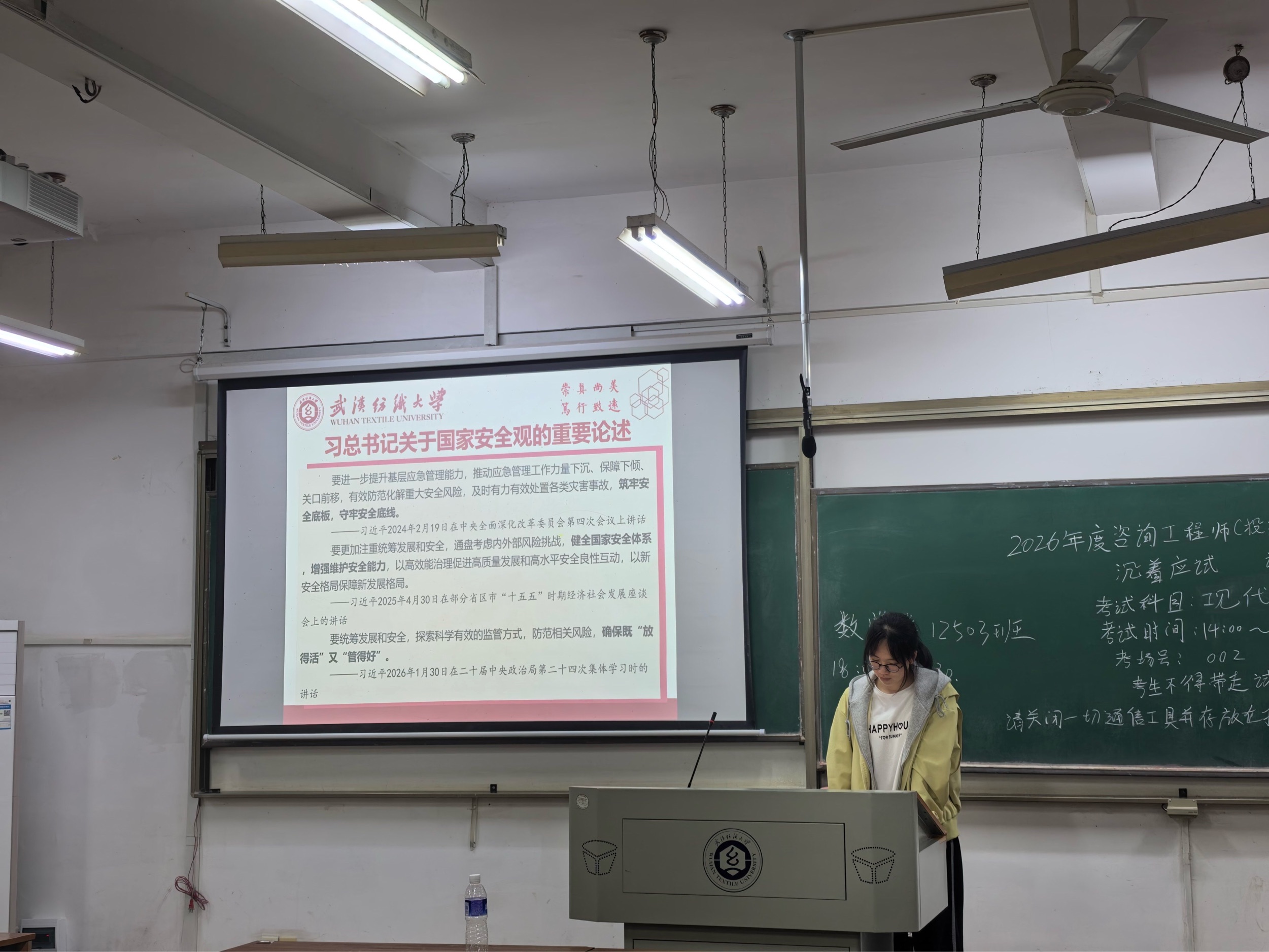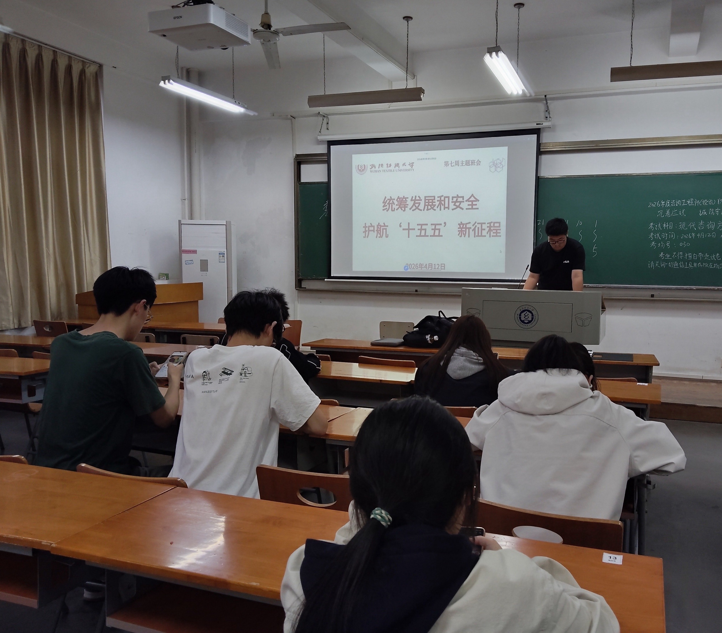 为迎接4月15日全民国家安全教育日,强化青年学生国家安全意识,数学与统计学院于2026年4月12日在崇志楼召开第七周主题班会。本次班会以“统筹发展和安全,护航‘十五五’新征程”为主题,各班级有序开展学习教育活动,全体同学参与其中,班会由各班班长主持,全体同学参加。