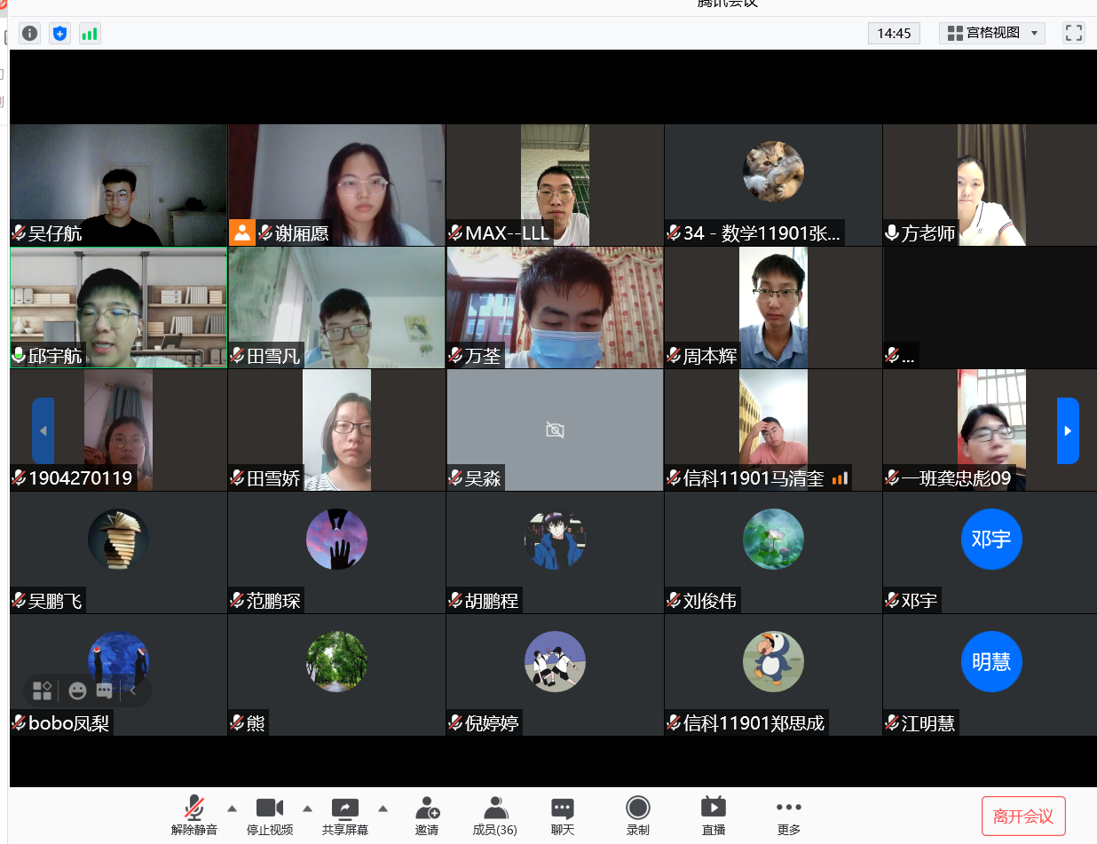 8月9日-10日,数理学院各年级分别召开了新冠疫情防控及防诈骗主题教育线上班会。数理学院全体学生参会,各年级辅导员主持本次会议。