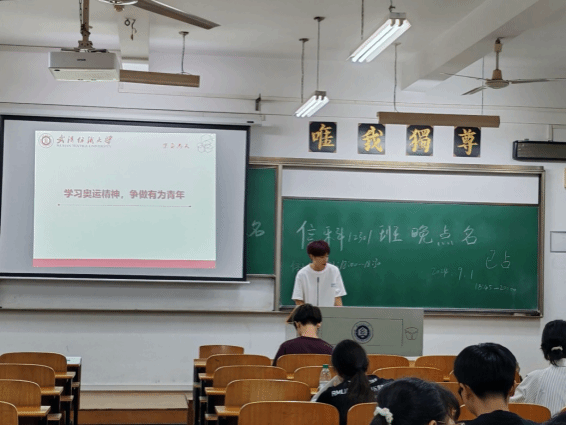 随后,各班班长带领同学们学习了奥运精神,要学习运动员们坚韧不拔的拼搏精神,超越自我的勇气和决心,团队协作精神,爱国精神等等,争做有为青年。