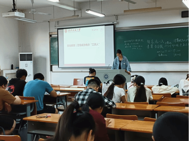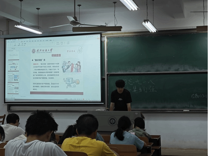随后,班会进入“警惕成为电诈工具人”的环节,各班团支书结合实际情况,向同学们介绍了电信诈骗分子诱骗他人成为电信诈骗帮凶的常见诱骗套路和防范措施,如出租、出借、出售“两卡”、架设虚拟拨号设备、架设“手机口”以及帮助“推广引流”等,让同学们更加深入地了解了电信诈骗的危害和如何避免成为诈骗分子的帮凶。电诈“工具人”往往打着“高薪兼职”的旗号,因此团支书强调千万不要因贪图小利而以身试法。