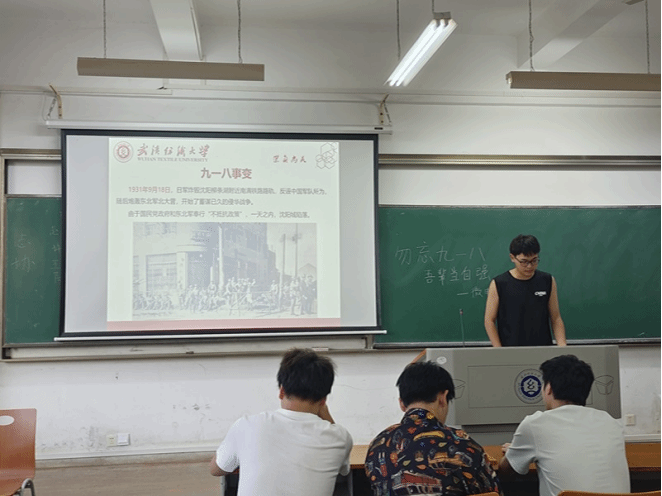 会议伊始,在各班团支书的引领下,同学们首先回顾了九一八事变的历史背景和深远意义,警示同学们要勿忘昨天之苦难,无愧今天之担当,以史为鉴,开创未来!