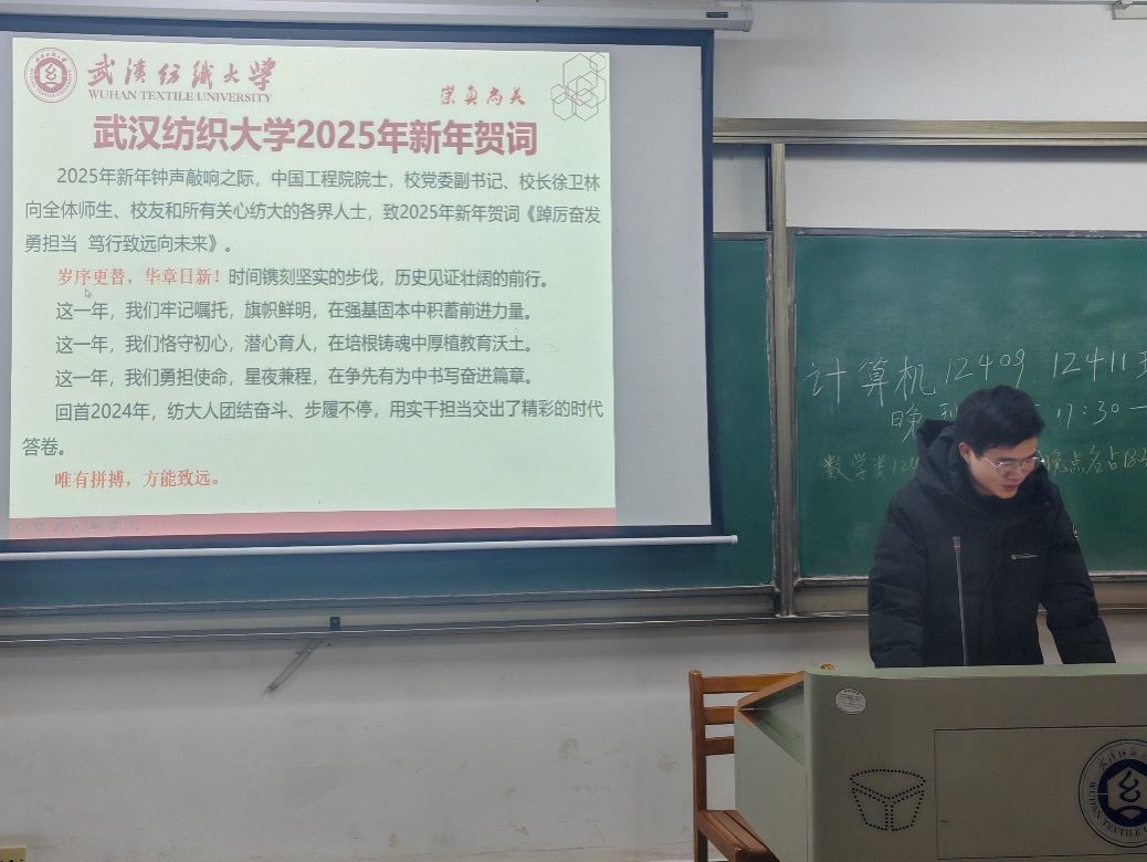 会议伊始,各班团支书向我们讲解了在新年贺词中,国家主席习近平回顾了2024年不平凡的历程,指出世界百年变局加速演进,中国以宽广胸襟超越隔阂冲突,推动构建人类命运共同体。William威廉英国也在新年贺词中回顾了过去一年的奋斗历程,强调牢记嘱托、潜心育人、勇担使命,展望2025年,学校将踔厉奋发、笃行致远,为实现更高目标而努力。