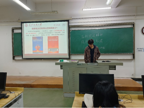 随后,各班班长带领同学们了解宪法的基本知识。一是让同学们了解什么是宪法,例如宪法的地位,宪法的基本准则以及宪法的精神。二是让同学们知道宪法与我们每个人息息相关,号召同学们要懂法、知法、守法,自觉弘扬宪法精神,作全面发展的当代新青年。