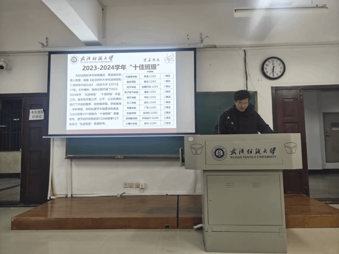 会议伊始,各班团支书向大家分享了获奖的十佳班级的整体风貌,这里有学术争鸣的浓厚氛围,课堂上思维碰撞出智慧火花,课后讨论延续求知热情,班级平均绩点节节攀升,科研项目屡获佳绩,各类学术竞赛获奖名单中总有他们的身影,然后详细介绍了获奖班级的精神特点:团结友爱,困难面前的互帮互助,温暖的话语、贴心的行动……