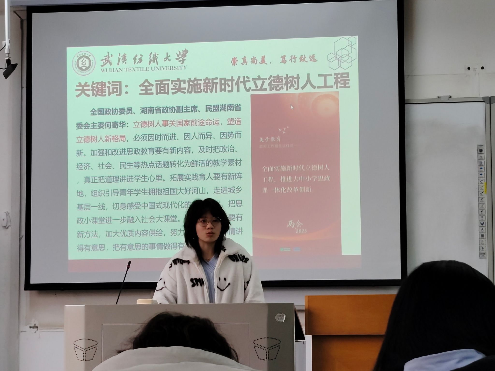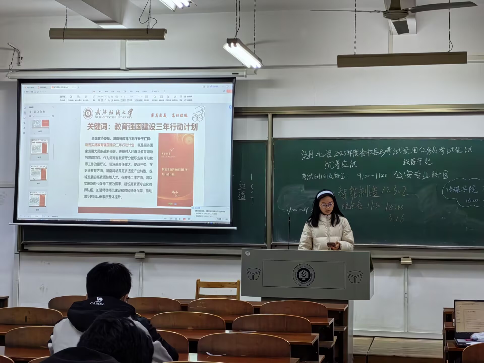 随后,各班团支书带我们理解“教育强国”的国家战略蓝图内容:解读三年计划核心目标(如基础教育提质、职业教育改革、高等教育创新等)。分析政策与“中国式现代化”的关系(科技、人才、创新驱动)。数据展示:对比教育投入增长、师资队伍建设、教育资源均衡化进展。