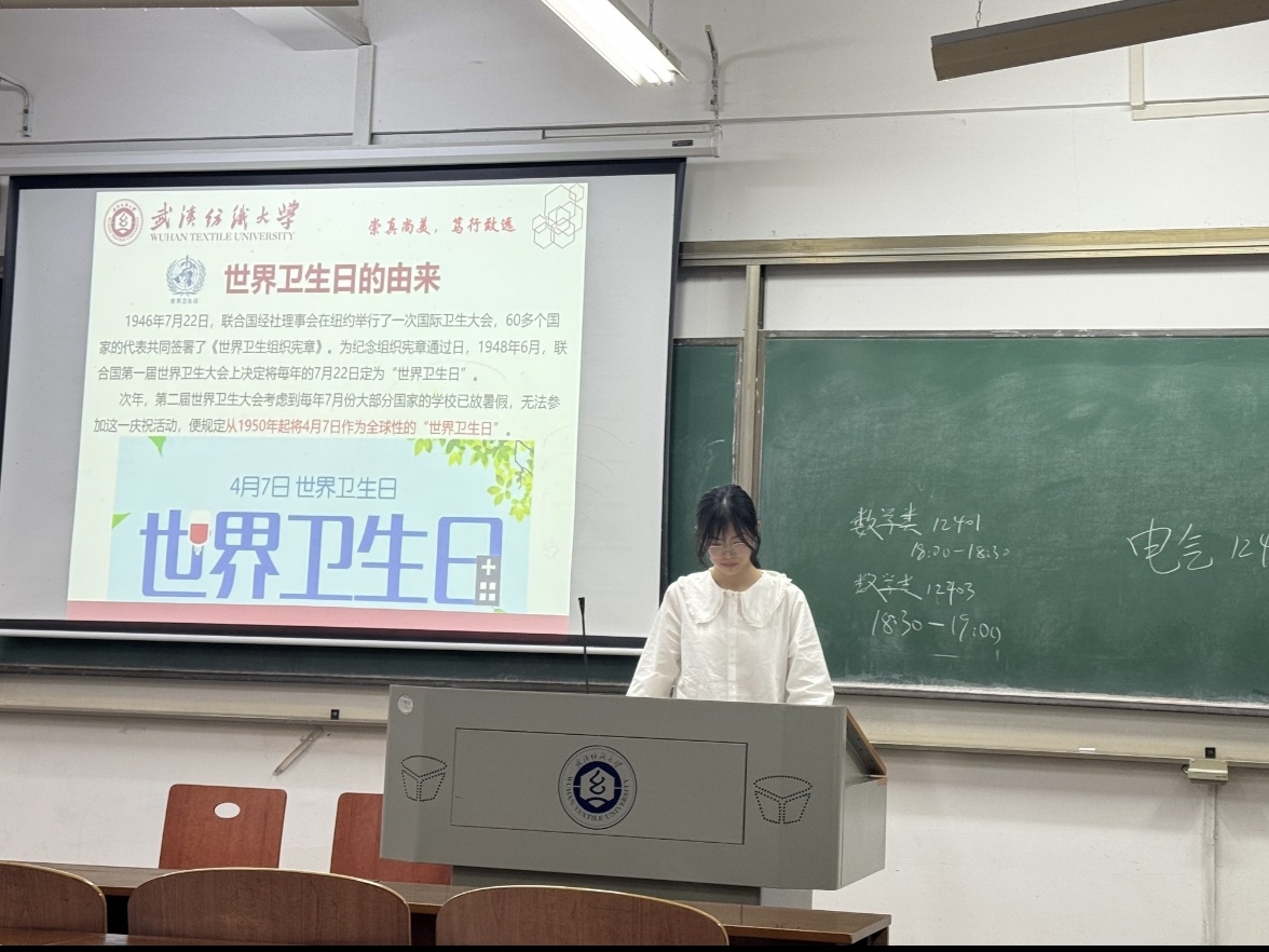 班会伊始,各班团支书以“世界卫生日”的故事为切入点,通过视频案例呈现世界卫生日的由来以及意义,引导学生思考健康人生的重要性。该环节不仅深化了学生对“健康起点”内涵的理解,更激发了其将卫生条约融入日常行动的决心。