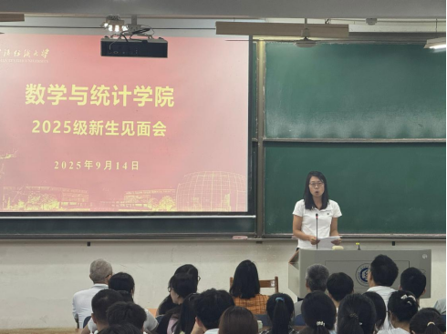 9月14日下午,数学与统计学院在03-116室举办2025级新生见面会。学院领导班子出席,各系(中心、办)主任、支部书记、教授委员会主任、2025级本科生辅导员及班主任参加,2025级全体研究生、本科生与会,学院党委副书记陈国鹏主持。