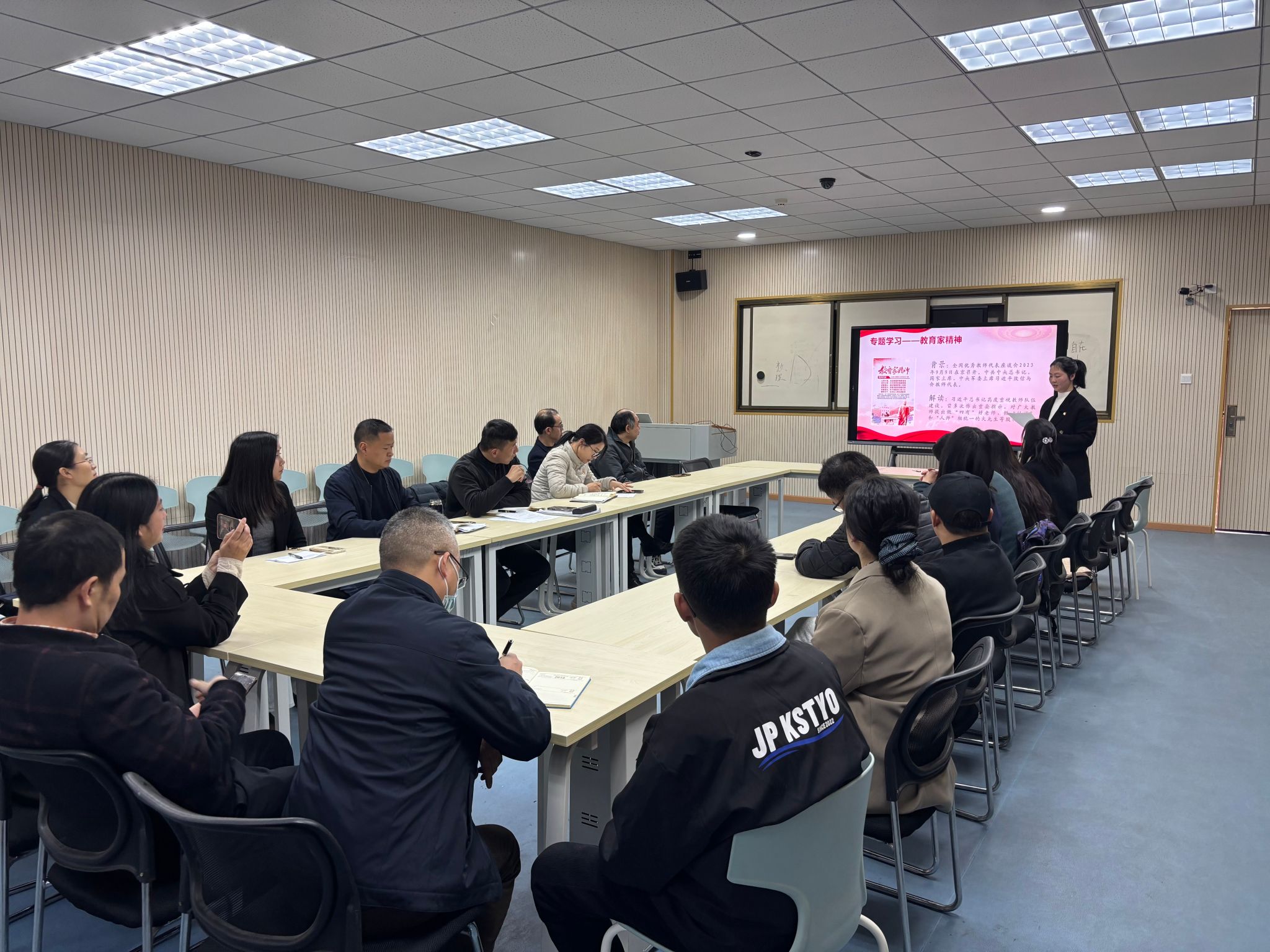陈国鹏同志围绕“弘扬教育家精神,争做新时代大先生”作主题发言,号召全体党员教师以教育家精神为引领,坚守三尺讲台,潜心教书育人,真正把为学、为事、为人统一起来,当好学生成长的引路人。