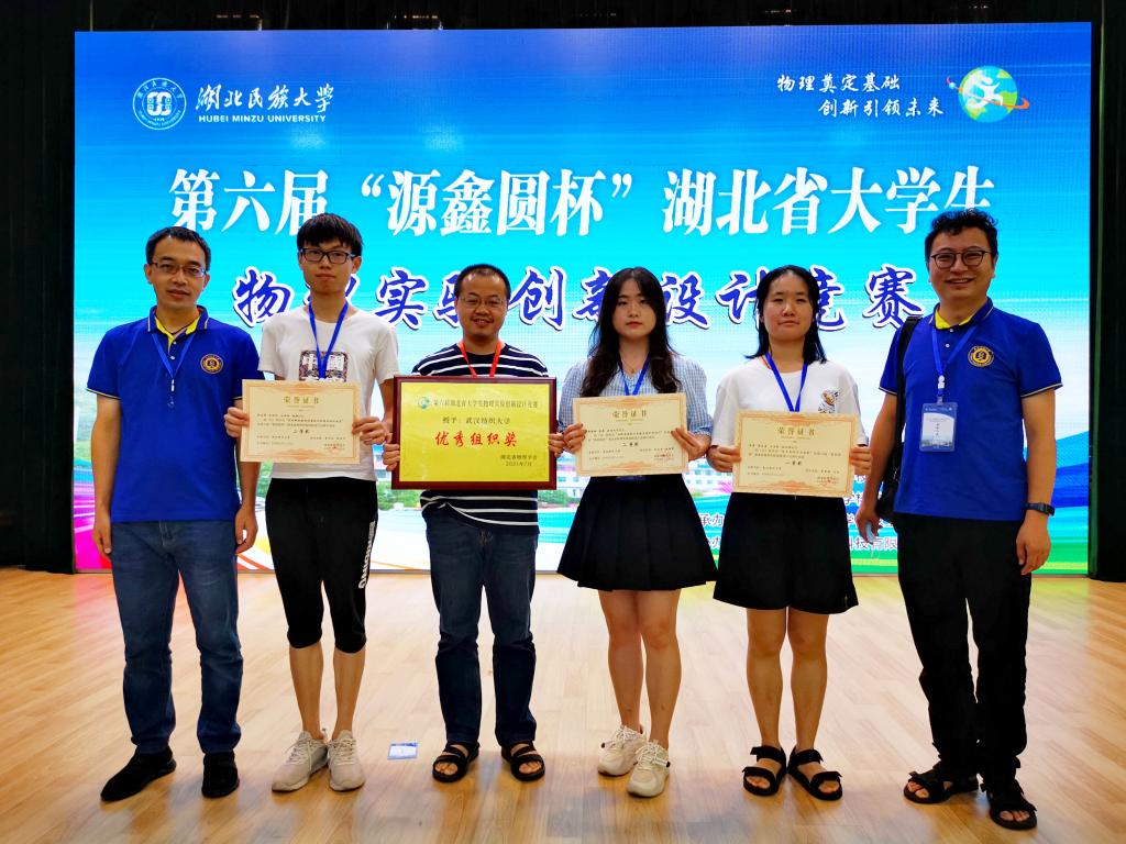2021年7月24日,湖北省第6届大学生物理实验创新设计大赛决赛在湖北民族大学举行。我校代表队在本次设计大赛中喜获一等奖1项、二等奖2项、三等奖5项,学校获评优秀组织奖。