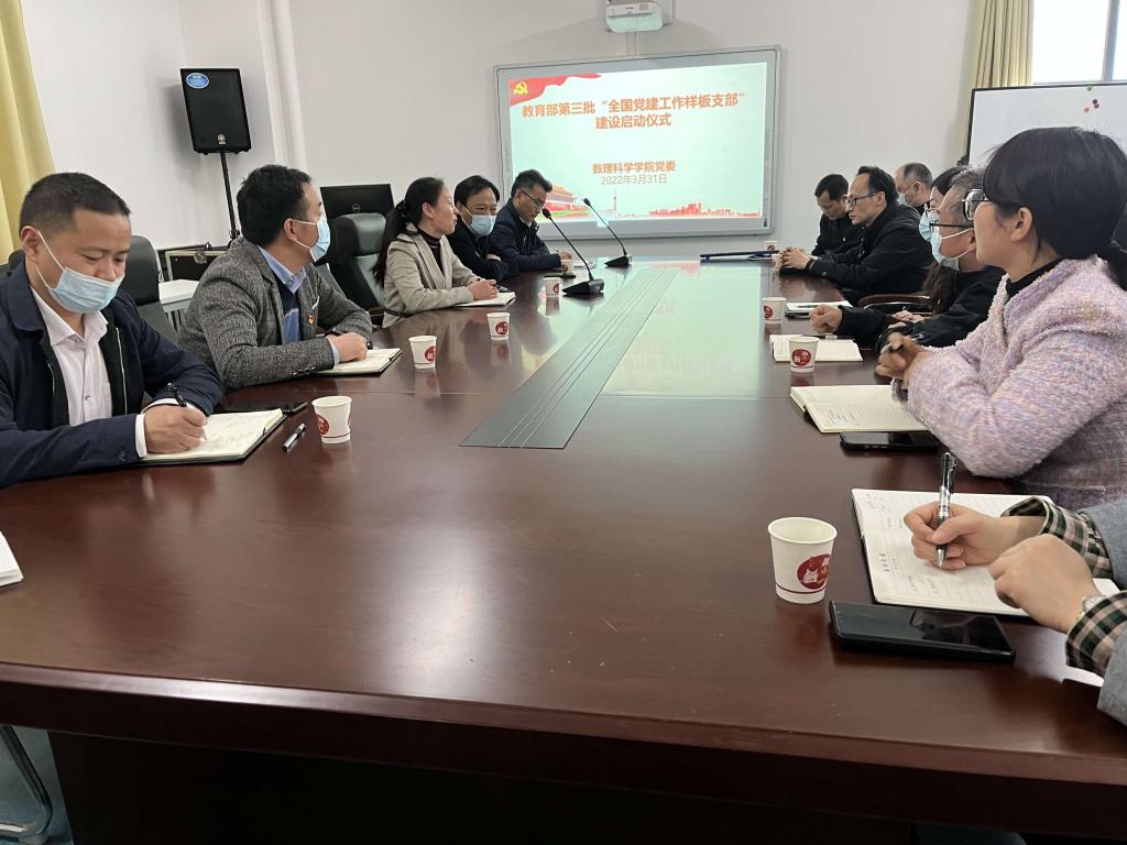 2022年3月31日下午,教育部第三批“全国党建示范党支部”建设启动仪式在实训楼南楼3028举行,校党委组织部副部长秦红、williamhill英国党政班子成员、党委委员、支部书记和信息与计算科学系党支部、应用数学系党支部全体党员教师参加启动仪式,信息与计算科学系党支部书记仇华海主持仪式。
