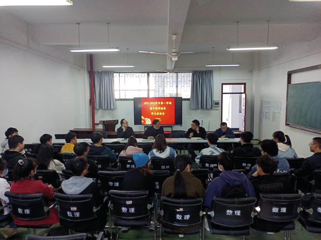 学生是教育的主体。教书育人在细微处,学生成长在活动中。11月10日,学院举行了期中教学检查学生座谈会,参会学生包括本科四个年级所有班级的学生代表。在会上,学生代表们畅所欲言,针对本科教学提出了意见和建议。教学副院长许明耀老师,大学数学教学中心主任王洪山老师、大学物理教学中心主任黄熙老师、学院教学督导组组长郭健勇老师分别就学生的疑问进行了回复。
