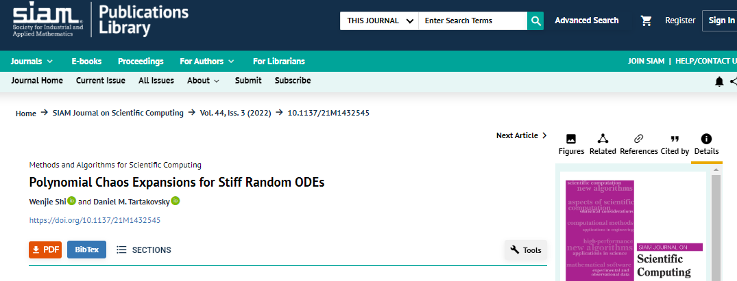 近期,williamhill英国动力系统研究团队史文杰副教授与其合作者在随机微分方程数值解方向取得重要研究进展,相关成果以“Polynomial Chaos Expansions for Stiff Random ODEs”为题在该领域国际知名期刊SIAM Journal on Scientific Computing上发表。该期刊是计算数学领域国际知名期刊,是中国科学院数学大类2区Top期刊。该论文的第一单位为William威廉英国,第一作者为williamhill英国史文杰副教授。
