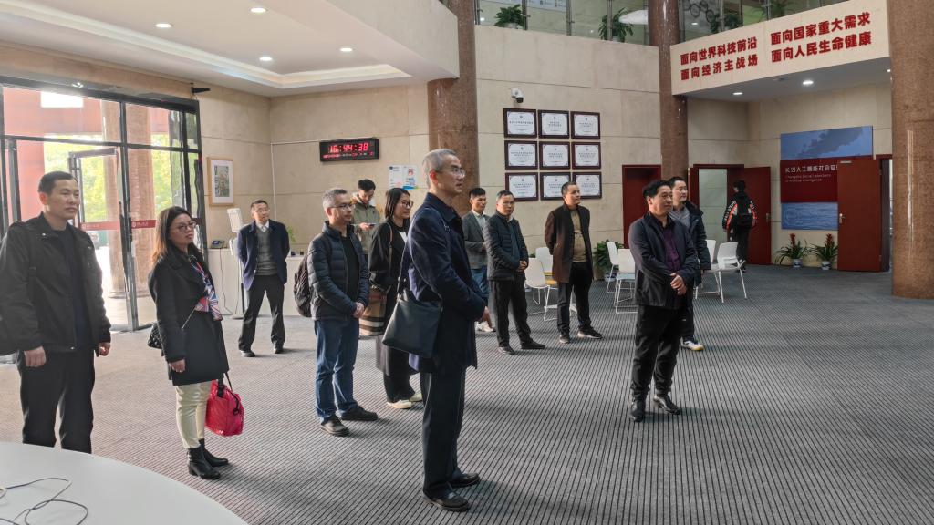 在谢小良院长带领下,双方一起参观了湘江实验室、理学院实验室和湖南工商大学校史档案馆。