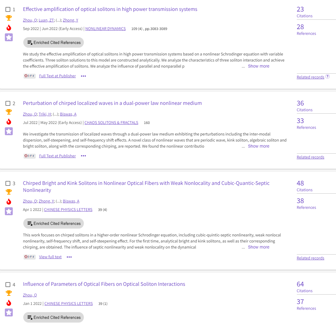 3月,全球领先的信息分析公司爱思唯尔正式发布2022“中国高被引学者年度榜单”。2022爱思唯尔“中国高被引学者”榜单以全球领先的引文与索引数据库Scopus作为统计来源,采用了上海软科教育信息咨询有限公司开发的方法,最终得到5216名各学科最具全球影响力的中国学者。光学团队周勤教授再次入选物理学科中国高被引学者,也是湖北省属高校中物理学科的唯一上榜者,彰显出我校物理学科建设取得新成效。